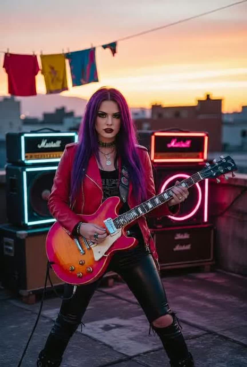 Female-fronted punk alternative with raw guitars, glitch textures, and sharp loud-soft contrasts, Balance of melodic vulnerability and rebellious raw energy, ‑Avoid glossy pop production, ‑heavy auto-tune, ‑cinematic orchestration, ‑or EDM-style drops, ‑Keep the sound jagged, ‑imperfect, ‑and human