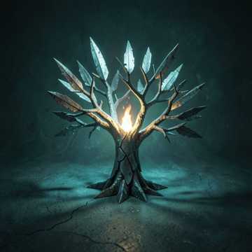 Begin with a soft mid paced motif, fragile and echoing like a final breath before the storm, Add slow tribal drums with deep toms and a pulsing sub‑bass that grows steadily, Industrial textures rise—metallic drones, mechanical pulses—shifting into a fast, driving dark‑metal rhythm with tight, grinding riffs, Blend in alt‑metal grit and a sharp nu‑metal bounce, keeping vocals clean, powerful, and urgent, Two electric guitars erupt into the most intense dual‑lead section of the album, weaving rapid ascending lines that collide in a blazing apex, Let the energy collapse into a quiet acoustic reprise, fading like the last ember of a dying fire
