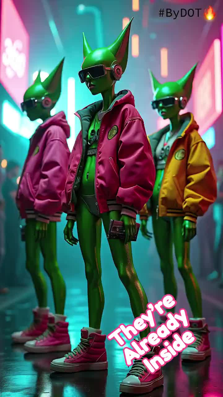 A high-energy sci-fi concept song in 4 acts + outro, Starts with robotic synthwave intro, then shifts into glitchpunk chaos, disco rebellion, and a cinematic electronic finale, Includes genre transitions, BPM changes, and dramatic FX: UFO landings, laser blasts, static, reversed sounds, stomps, vocoder whispers, Vocal: female or androgynous "sync voice" – rhythmically precise, slightly out-of-sync, nasal, emotionless but confident (like New Order or Pet Shop Boys), Style blends 1980s retro-futurism with 2025 cyberpunk intensity, Think: aliens crash a synth-disco and override reality from the inside