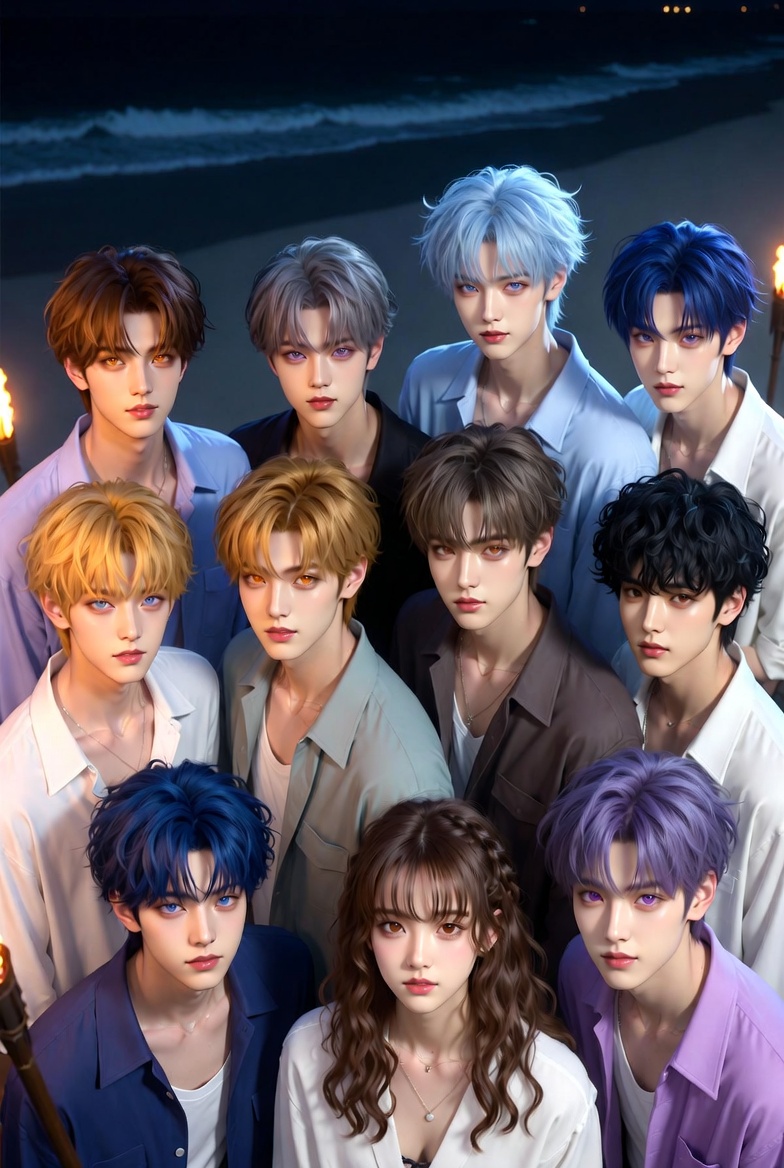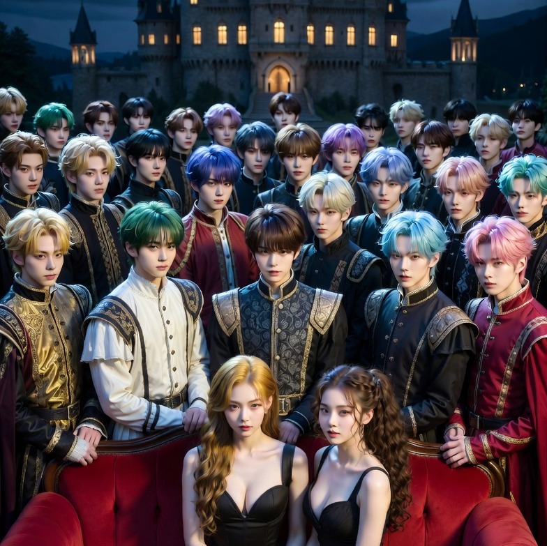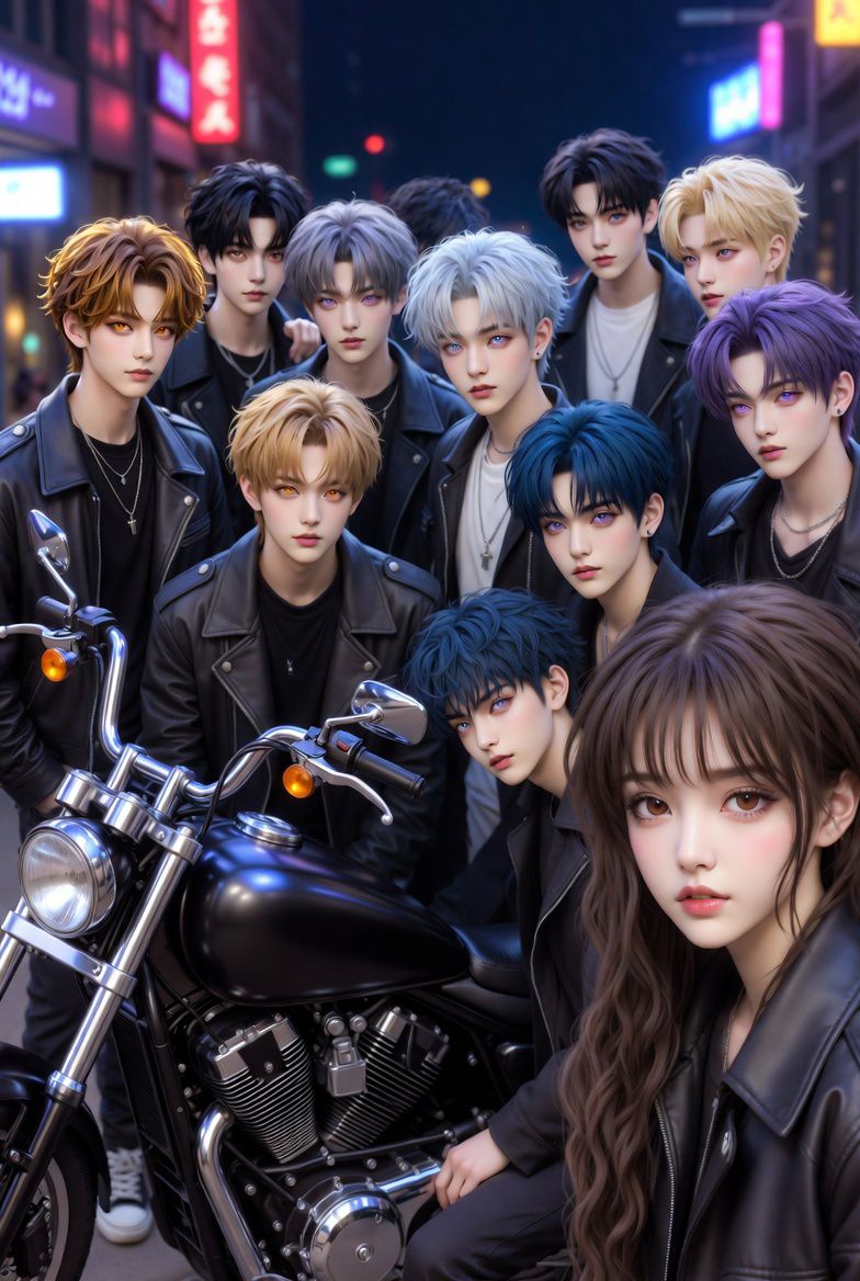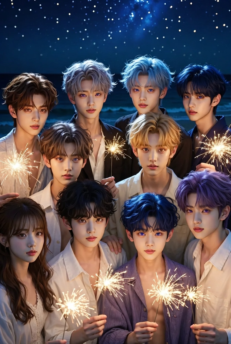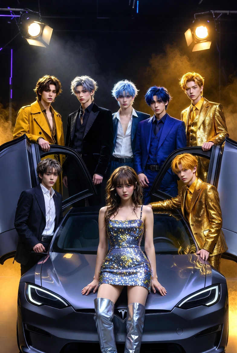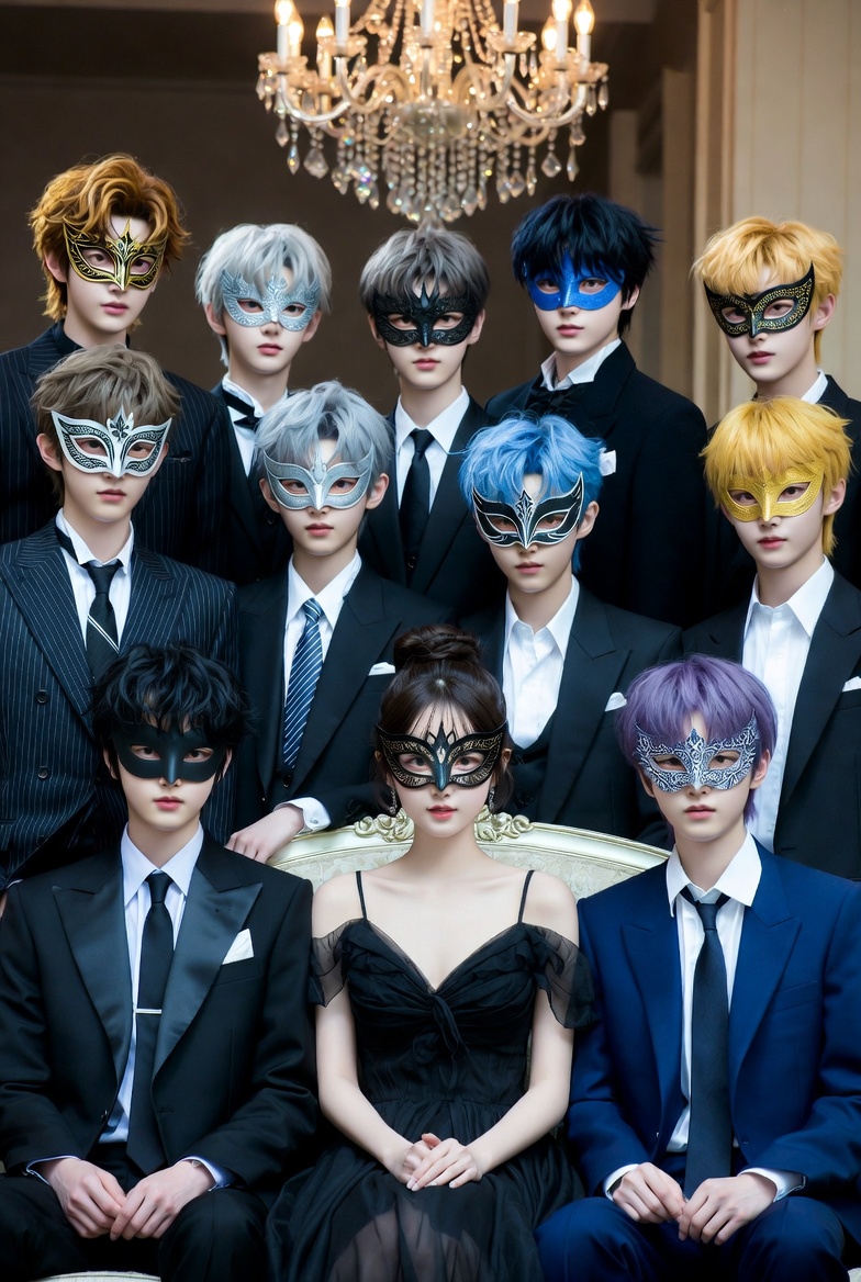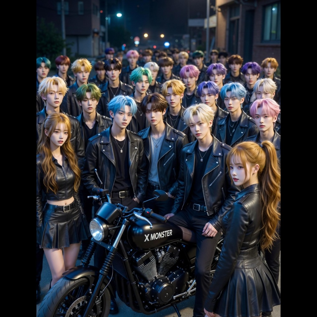 K-Pop, Synth Pop, Energetic Dance, 128 BPM, Vocal Arrangement: Male Group Lead Vocals (Ensemble), Female Solo Hook (High Energy Accent), Pulsing Synth Bass, Heavy Electronic Beats