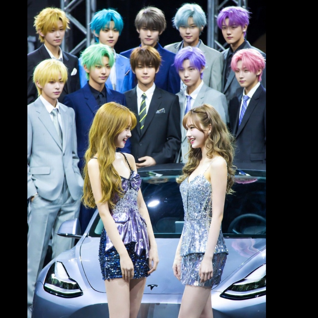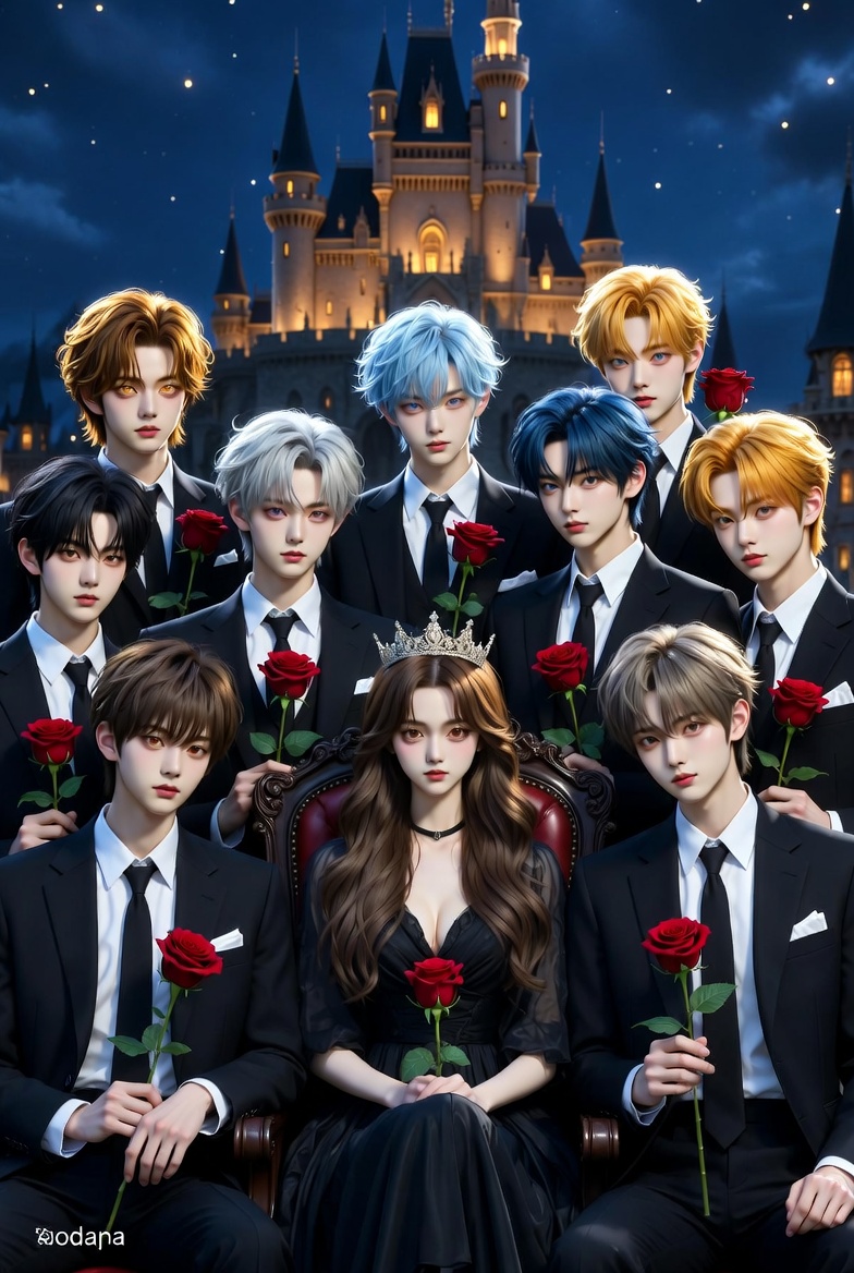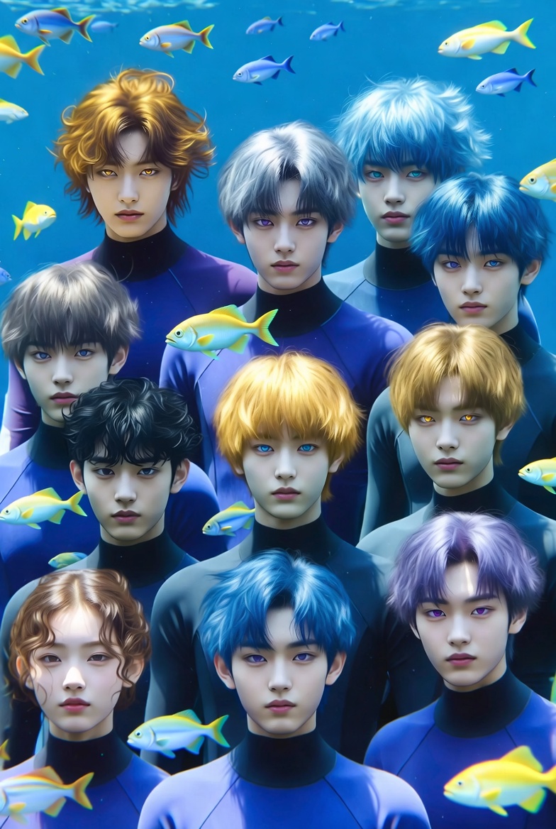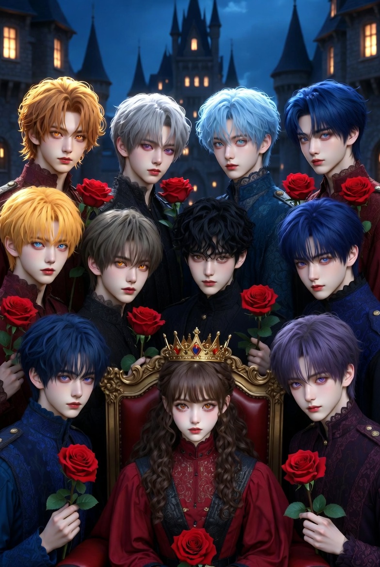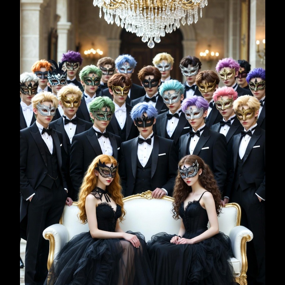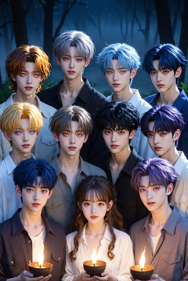 K-Pop, Synth Pop, Energetic Dance, 128 BPM, Vocal Arrangement: Male Group Lead Vocals (Ensemble), Female Solo Hook (High Energy Accent), Pulsing Synth Bass, Heavy Electronic Beats