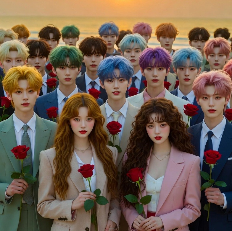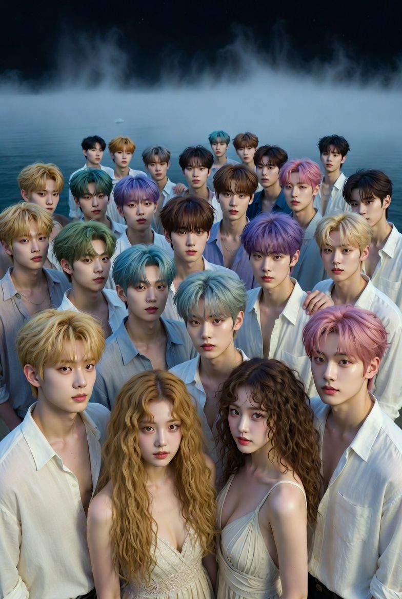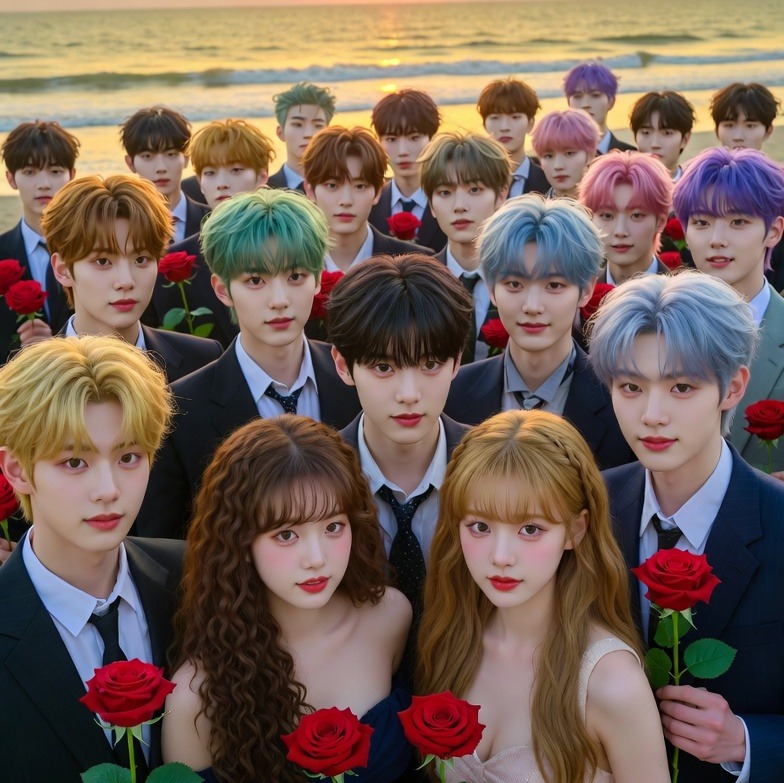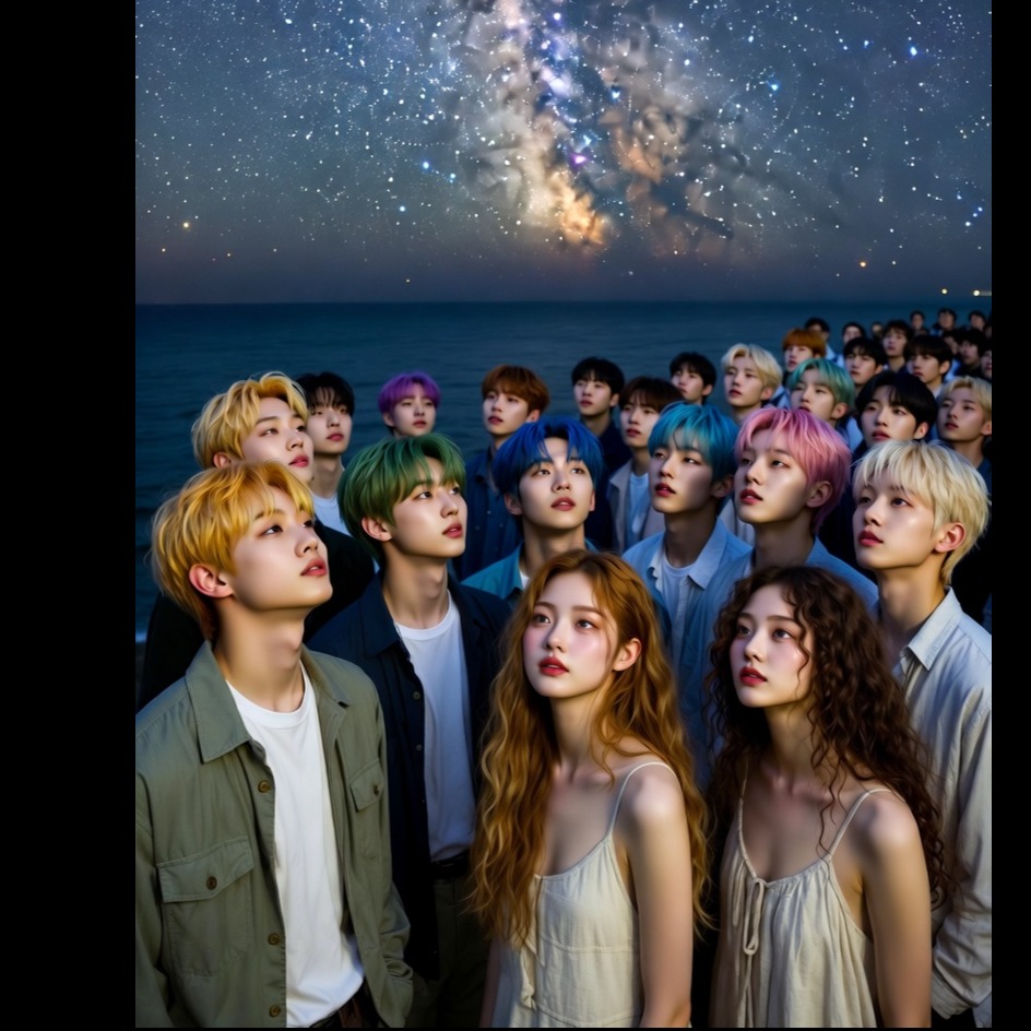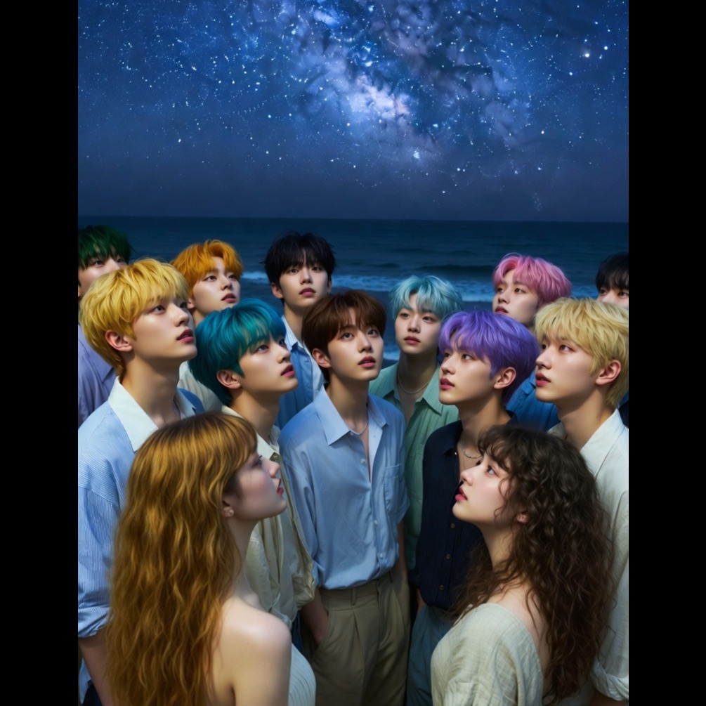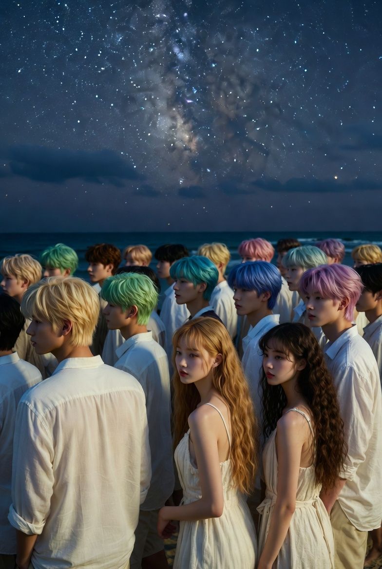 K-Pop, R&B, Ballad l, Cinematic Lo-Fi, Emotional Slow Jam, BPM 78, Soft Piano, Ambient Sea Waves, Lo-Fi Beat, Warm Synth Pads, Electric Guitar Swells (Clean Tone), Soft Duet + Group Whisper