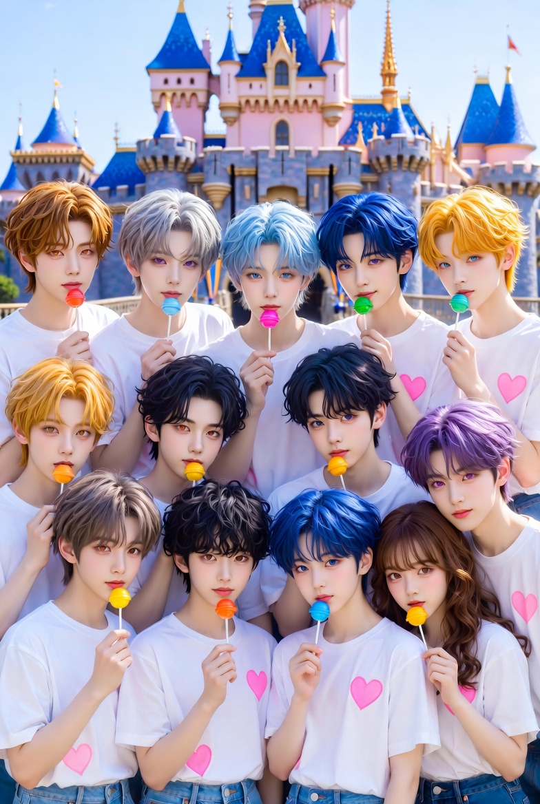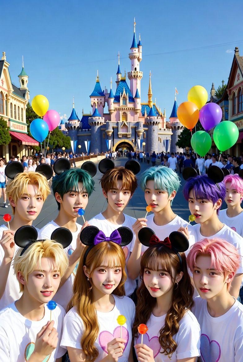 K-pop Pop, Joyful Fantasy, 126 BPM, Vocal Arrangement: Group Vocal Lead with Rap Break, Bubbly Synth, Upbeat Drums, Magical Strings