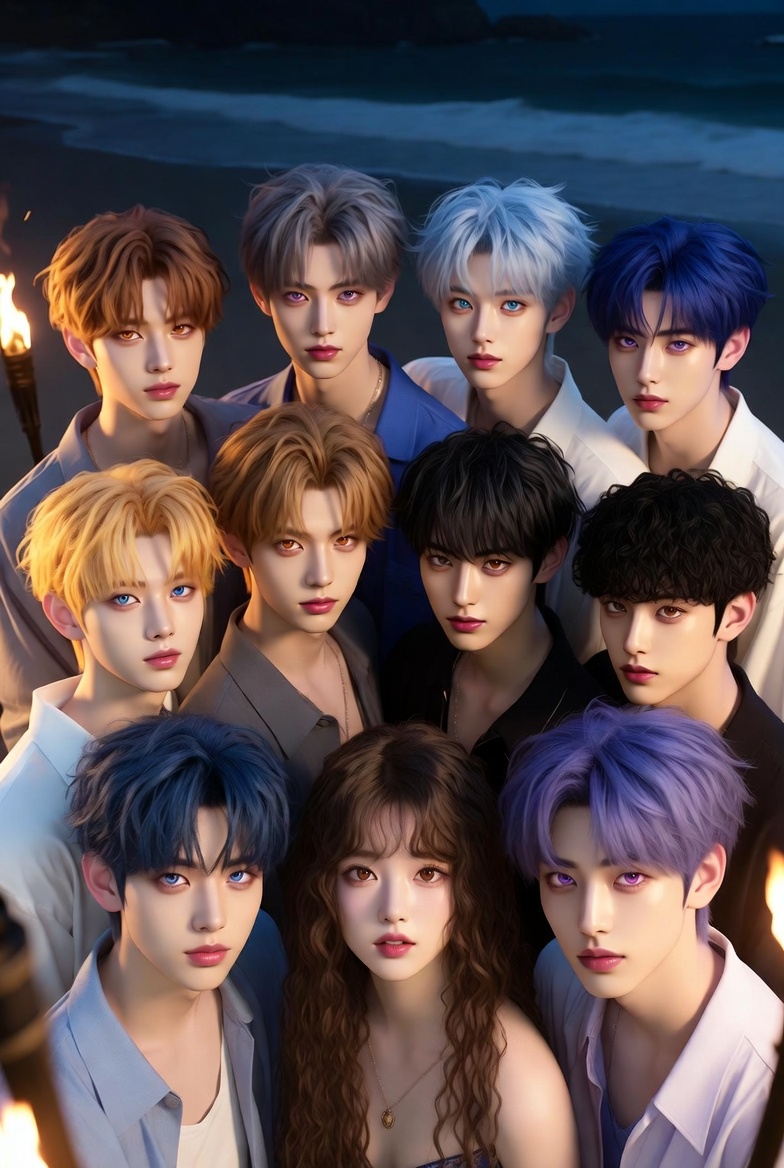 K-pop Trap, Wave Bass Drop, Endgame Revenge, 140 BPM, Vocal Arrangement: Group Rap Lead with Solo Verses, Heavy Bass Trap, Ocean Waves Synth, Distorted Drops