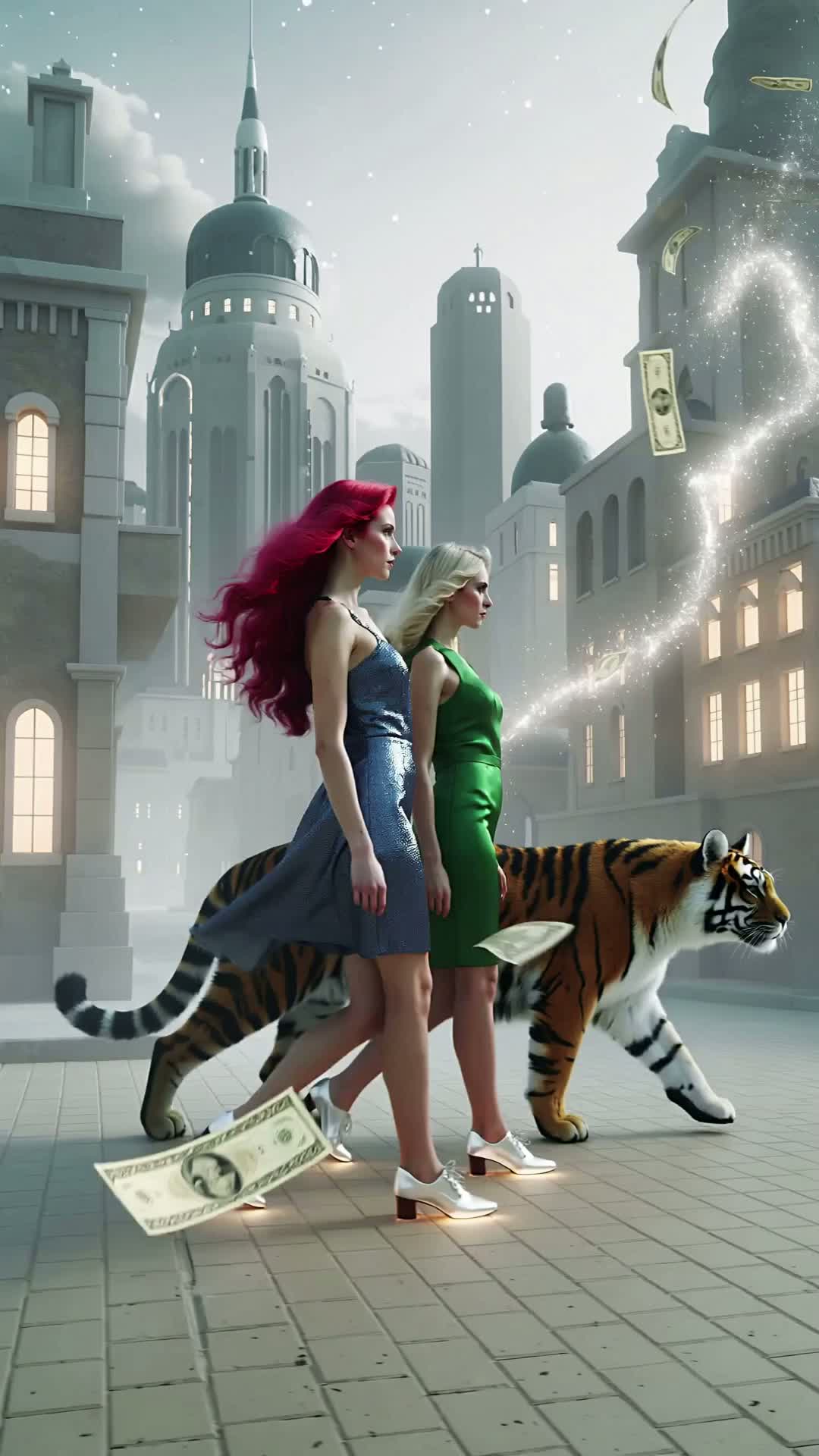 dance, Theatrical art-pop meets industrial salsa: opening with soft, close-mic female vocals over sparse piano and distant metallic ambience, then slamming into distorted percussion, growling synth bass, and clattering found-sound grooves, Choruses bloom with stacked harmonies and lush strings riding a syncopated Latin rhythm, then fracture into harsh, bit-crushed hits, Frequent sharp dynamic turns, call-and-response between tender and feral vocal tones, with a final cinematic swell that marries both worlds, soft, harsh, salsa