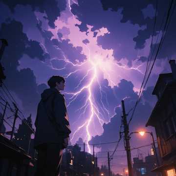 A high-pitched, glitchy ambient electronic track inspired by lightning in a night sky, Sharp, flickering synths mimic sudden flashes, layered with granular textures and distorted metallic sounds, Sparse, syncopated beats echo like distant thunder, Atmospheric pads swell with deep reverb, while digital glitches and percussive clicks create tension and chaos, The track conveys fleeting beauty, awe, and the raw, electrifying power of nature