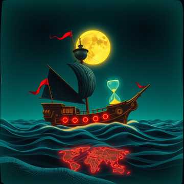 [mystical pirate ballad, haunting folk with sirens wailing, harp accordion soft waves]