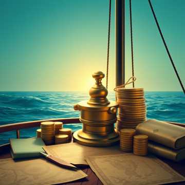mercantile march shanty, upbeat trade folk, coin clinks trading horns