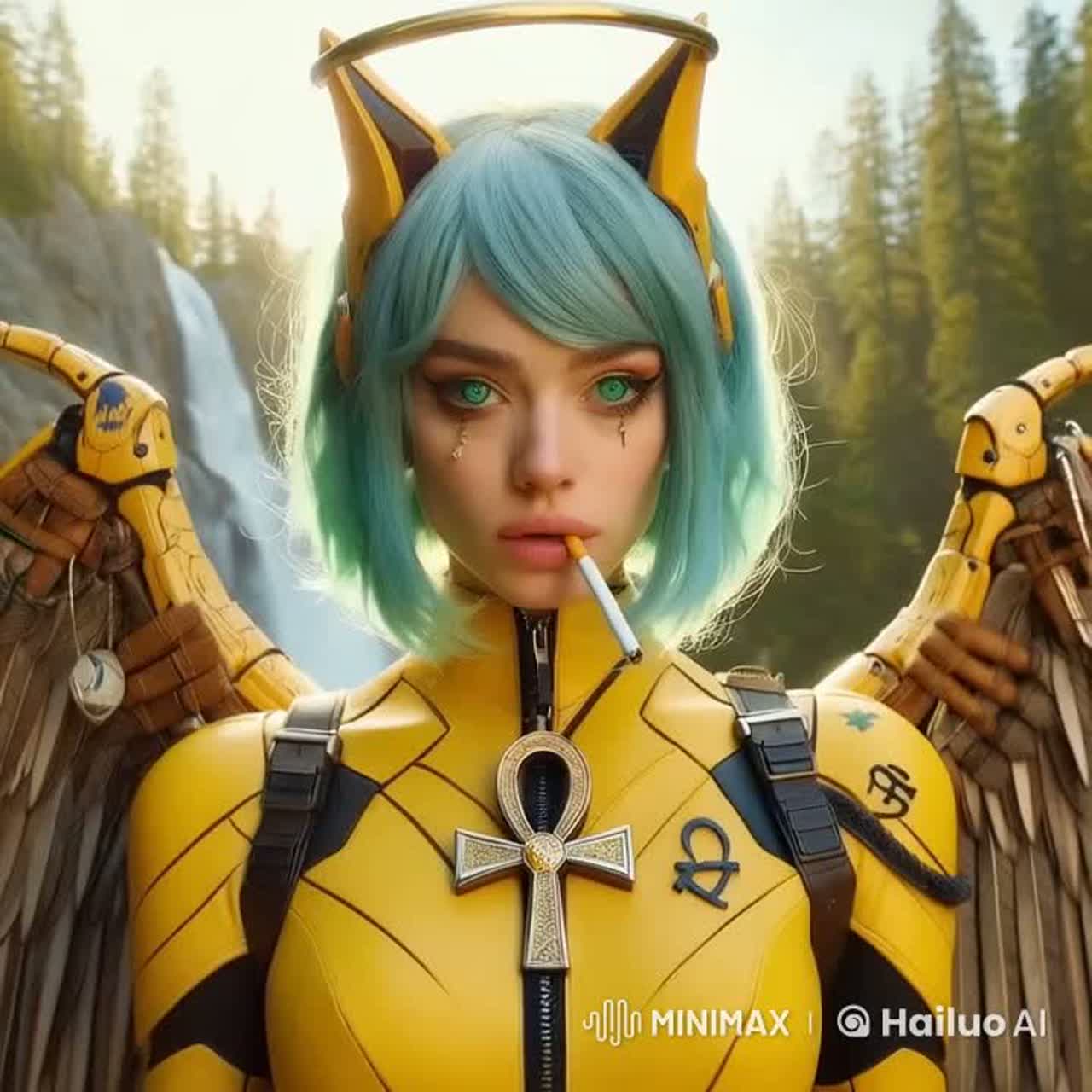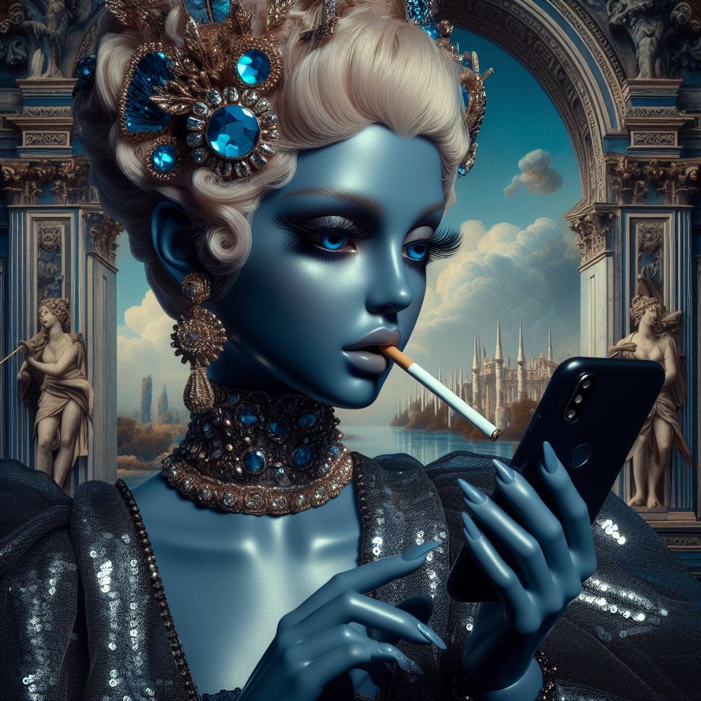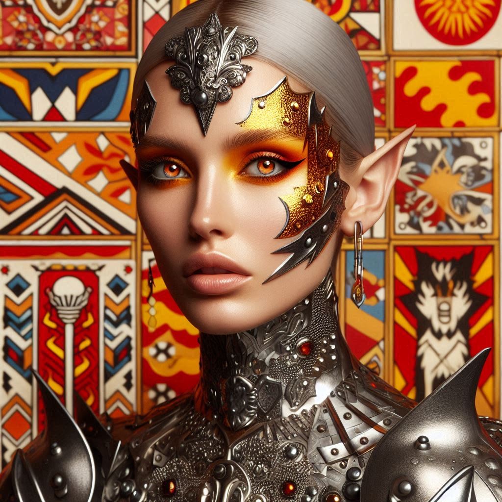 Distorted guitars weep like broken machinery—slow, molten bends bleeding into echo, The rhythm breathes in push-pull tension: toms heartbeat-slow, snares snapping like cracks in glass, bass sliding beneath in minor growls, Dual vocals—his rasp meets her ghostlight falsetto—drift between love and lament, their phrases mirroring the guitar’s aching phrasing, Harp and bells shimmer faintly behind the feedback fog, as if fairies mourn in a ruined garden, Tape hiss and granular flickers haunt the mix like static memories, Every riff loops hypnotically, each verse a cracked confession, each chorus a reflection on beauty’s poison, The sound feels cinematic yet intimate—a dream burning slow under stormlight, where emotion distorts like melted metal