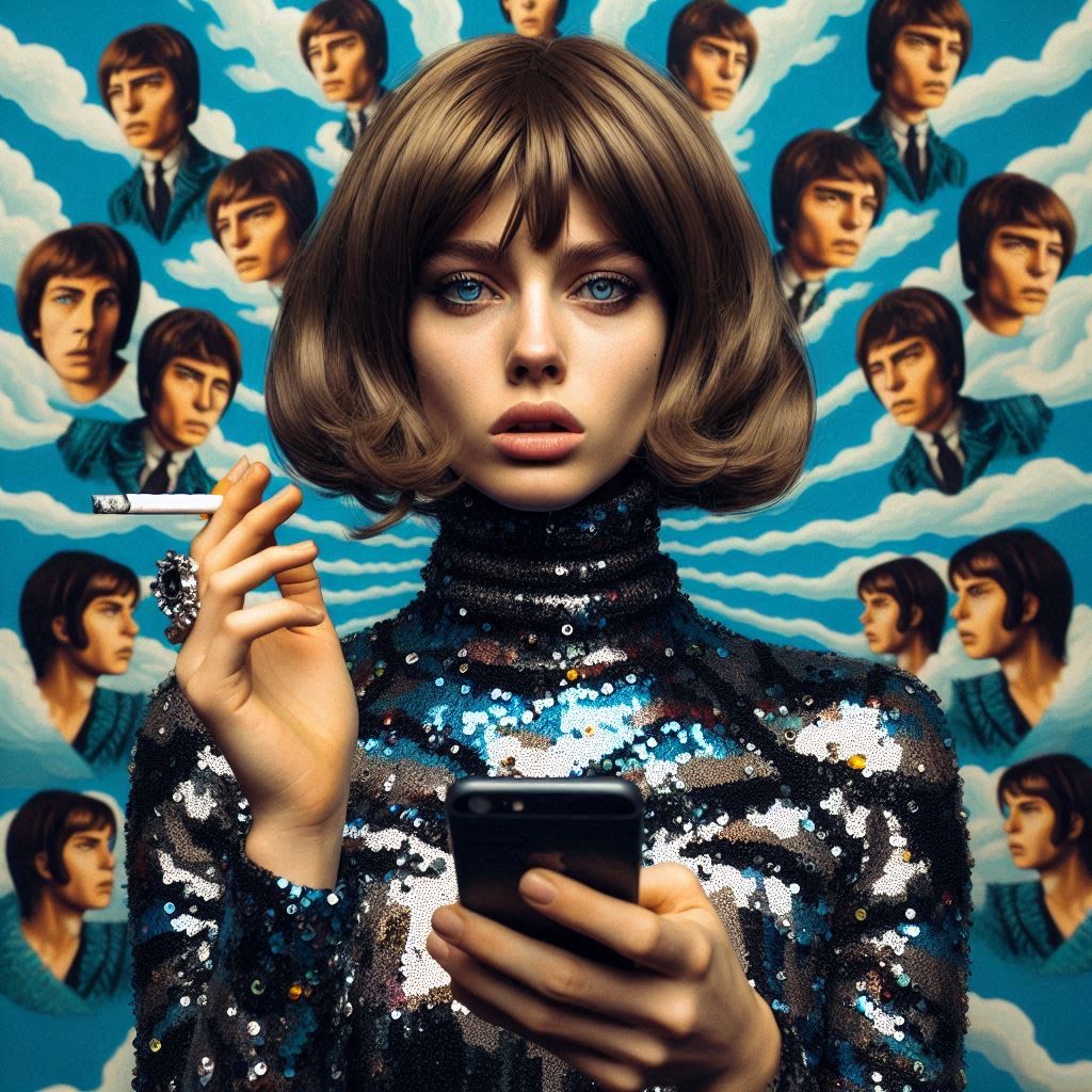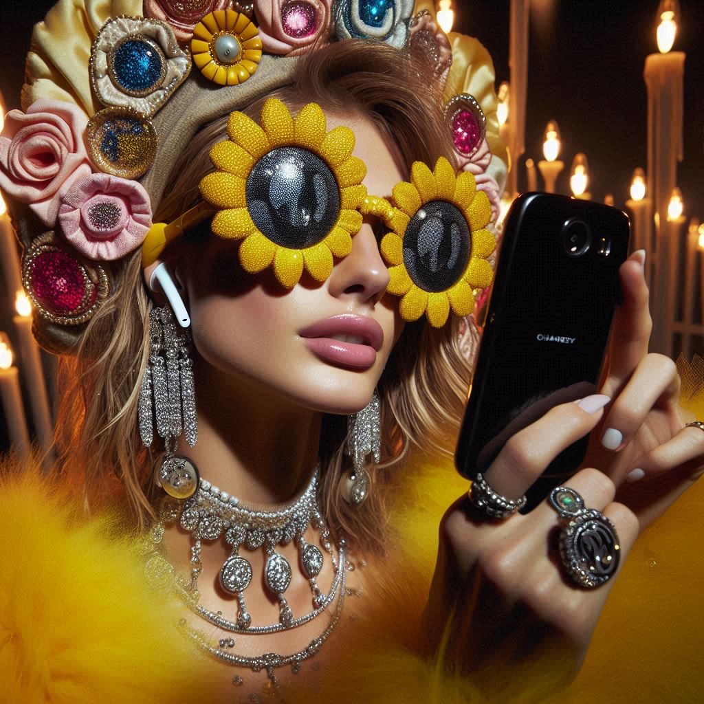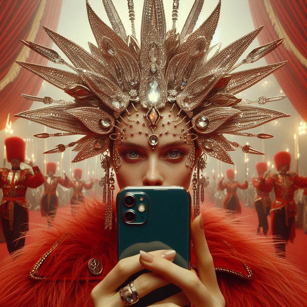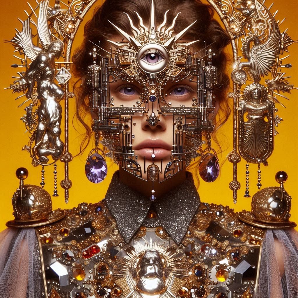 A kaleidoscopic storm-song, pulsing at 118 BPM where velvet kicks throb like heartbeats in cathedral halls, Handclaps crackle sharp, guitars shimmer with mandolin-light, sitar glides curl like smoke, Bass slithers elastic beneath, playful but weighted, carrying the flood, Keys bloom in golden haze, then dissolve into spectral reverb that lingers half a breath behind, Vocals weave sultry falsetto verses with raw, cheeky choruses, doubled by choirs like painted roses bursting in riot, Horns flare in sly fanfare, strings bend mischievous, distortion flickers like lightning through silk, The form is a carousel of dream and thunder: verses soft-lit, choruses radiant, bridge twisting in acid mirth, outro a whispered rabbit hole descent, A pop-psychedelic fantasia—half regal, half riot—where sound becomes spellcraft and every ending hides another door