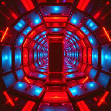 [Lead: detuned saw + FM stabs, spiraling micro-modulated arps; neon trails across stereo; metallic shimmer highlights peaks]