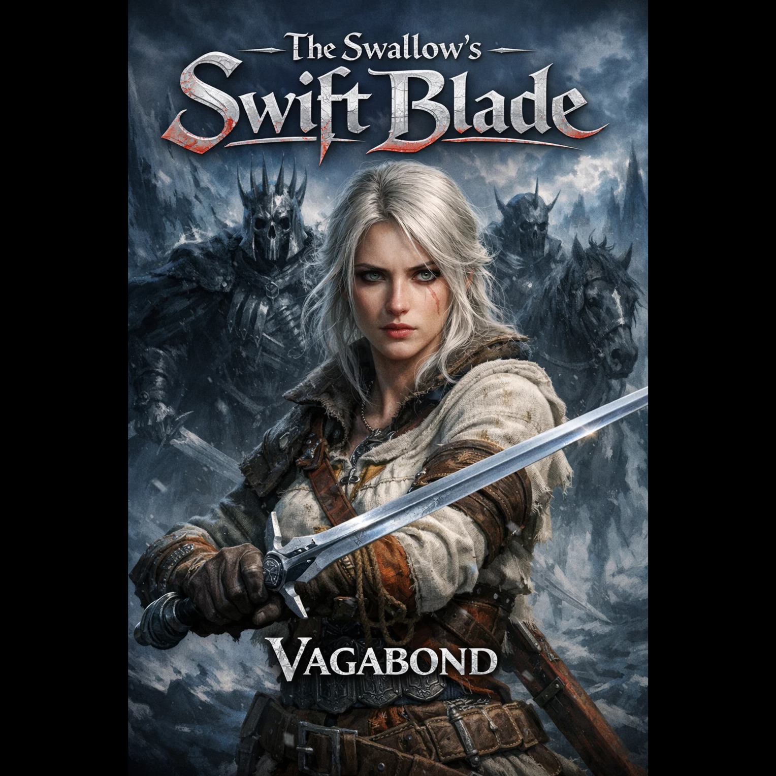 Epic Folk Metal / Melodic Death Metal with Symphonic Elements, Fast, aggressive, heroic, powerful female vocals (clean and some harsh/growl possible), intricate guitar riffs, driving drums, prominent Celtic/orchestral melodies, Distorted electric guitars, double-bass drumming, deep bass, soaring violins, epic French horns, folk flute/whistle, clean and harsh vocals, Defiant, vengeful, high-stakes, dark fantasy, relentless, determined, High-Quality