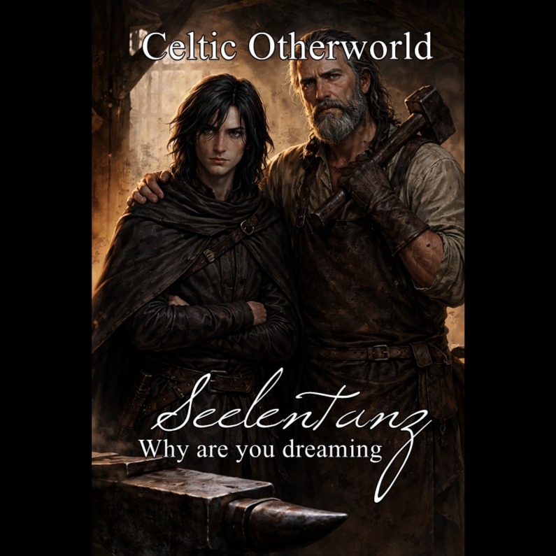Create a dark Celtic folk song with a medieval Irish atmosphere, Deep, emotional male vocals, slightly rough and warm, like a blacksmith singing, Slow to mid tempo, steady rhythm like hammer strikes on an anvil, Use traditional instruments such as low bodhrán drums, harp, fiddle, and tin whistle, with subtle ambient choir in the background, The mood is melancholic, grounded, and haunting, like a father warning his son, The lyrics should feel repetitive and mantra-like, with a strong, memorable chorus, Include layered vocal echoes and a second voice softly repeating parts of the chorus in Irish Gaelic, giving it a mystical and ancient feeling, Cinematic, emotional, intimate, with a slow build into a powerful final chorus