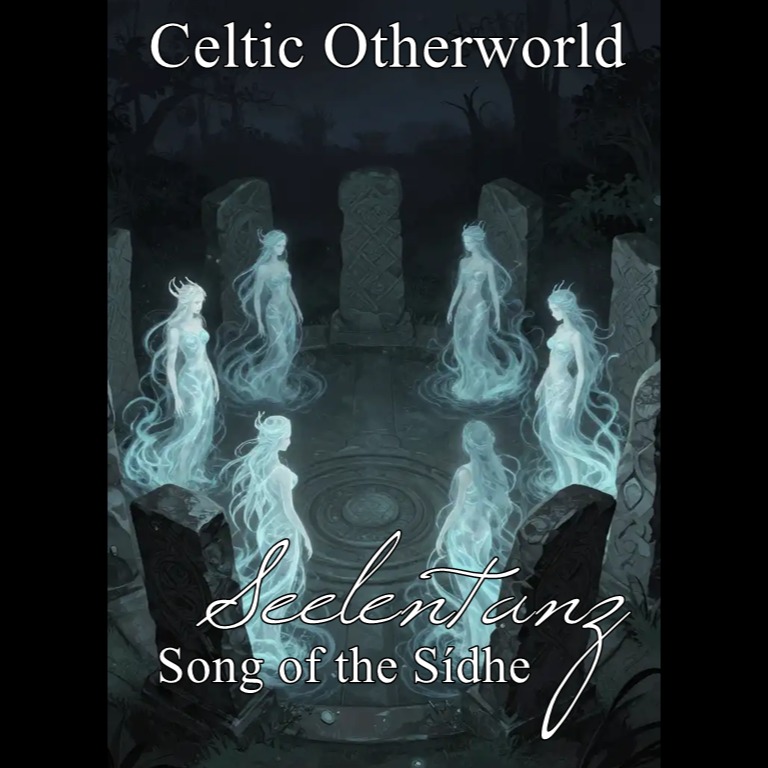 Create a Celtic dark folk song with a mystical and slightly faster, flowing rhythm (mid-tempo), The atmosphere should feel enchanted and hypnotic, like spirits calling from ancient hills at night, Use layered female vocals with clear lead melodies and soft echoing harmonies, mixed with whispered background voices, Include traditional Irish instruments such as harp, fiddle, and tin whistle, supported by steady bodhrán drums that give the song a heartbeat-like pulse, The mood should be both beautiful and unsettling, as if the listener is being gently drawn into another world, Alternate English verses with an Irish Gaelic chorus that feels like an ancient chant, Build energy gradually, leading into a rich, immersive final chorus with multiple vocal layers and subtle rhythmic drive