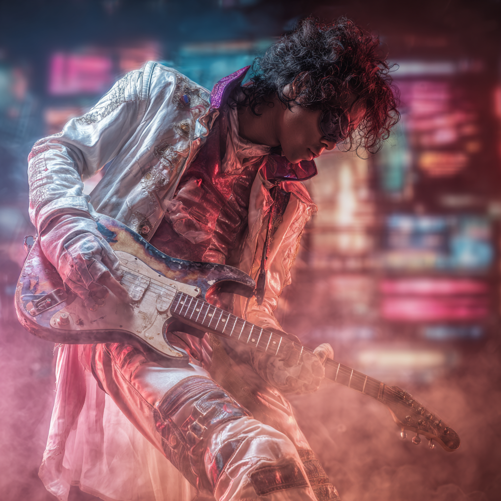 A high-energy electro-funk track pulses at 120 BPM in D# minor, built on tight, syncopated 808 beats and deep sub-bass grooves, Layers of provocative, heavily processed vocal FX deliver attitude, while searing, distorted guitar solos cut through funk synth stabs, Bright bluesy keys add lounge-class texture, modernized by crisp EQ and precision-mixed production, Prince inspired Verses lean on sultry, charismatic vocal phrasing, while choruses erupt with bold rhythmic interplay—driven by irresistible funk bass, sax, oboe, Prince inspired edgy guitar riffs, and swirling vintage lounge organ accents