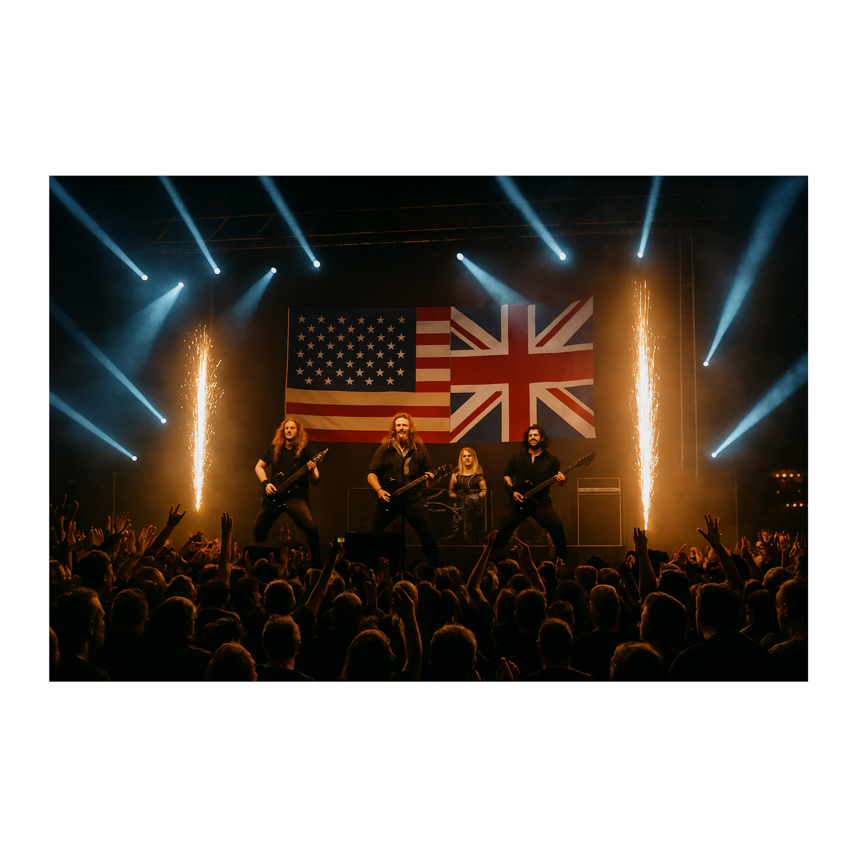 Opening with dense orchestral strings and trumpets layered over rapid-fire downtuned djent guitars, driving double-kick drums, and industrial synth textures, Rhythmic staccato riffs propel fast verses, while soaring brass and high choir pads lift epic choruses, Electronic glitches and dramatic breaks add urgency throughout