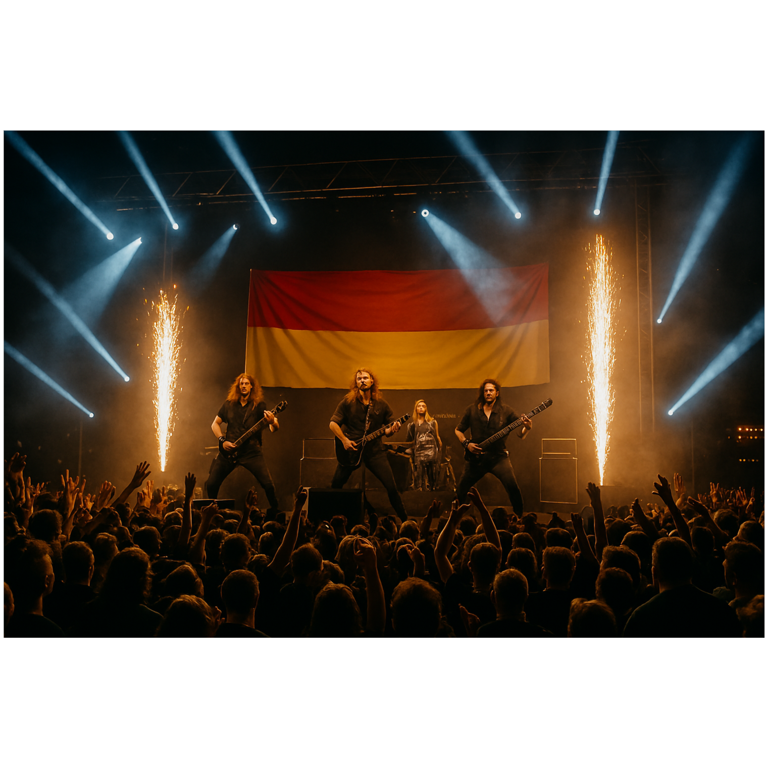 This hard techno-metal hybrid opens with pounding 4-on-the-floor kicks and clipped, syncopated 808s, Metal synth layers grow into the mix, joined by razor-edged guitars and crashing metallic percussion, Shouted German vocals drive the intensity, punctuated by aggressive, detailed ad libs, Each sound is EQ’d for maximum punch and clarity, sustaining high-voltage club energy throughout
