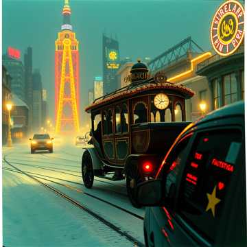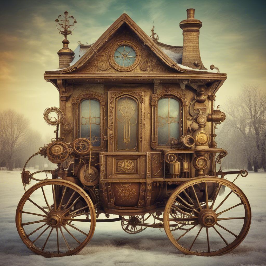 steampunk-inspired, evoking a whimsical yet gritty atmosphere, rhythmic, with brass and string flourishes over a boom-bap beat, rap, steampunk