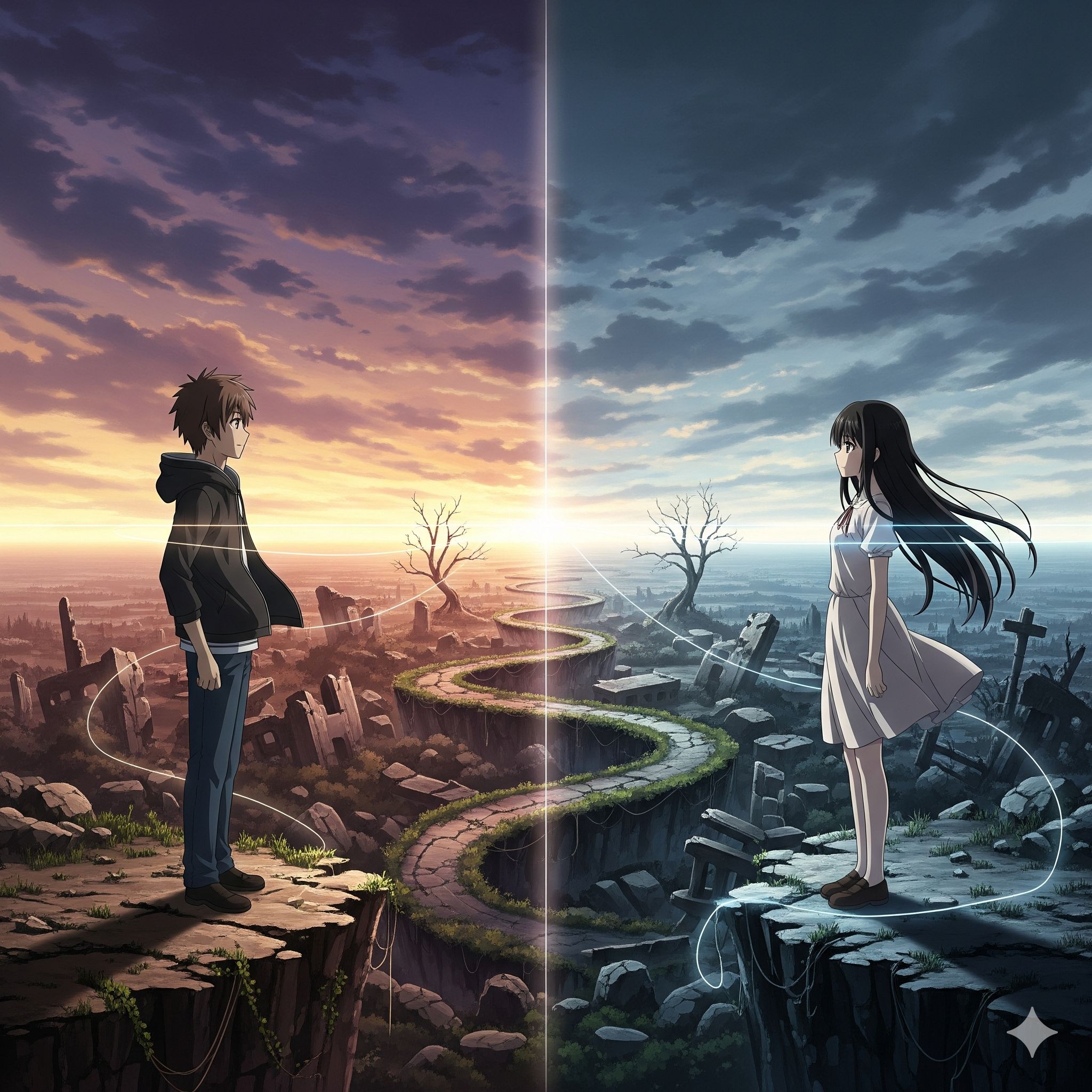 Emotional j-rock fusion bigbeat track, technical piano&violin, fast and intricate guitar riff, groovy bassline, complex drum patterns, emotional female vocal, driving, synth-pop, dreamy, cinematic atmosphere