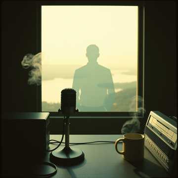 A conversation between two men, spoken words for a radio talk show, dramatic sound effects, cinematic conversation, raw male vocals