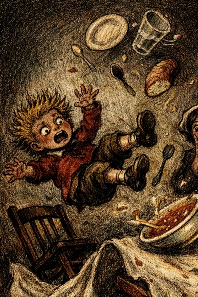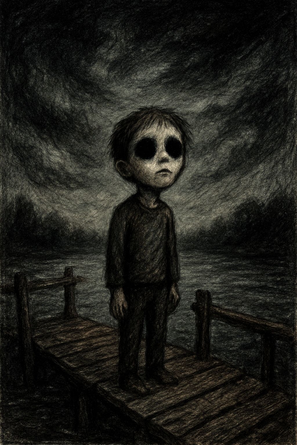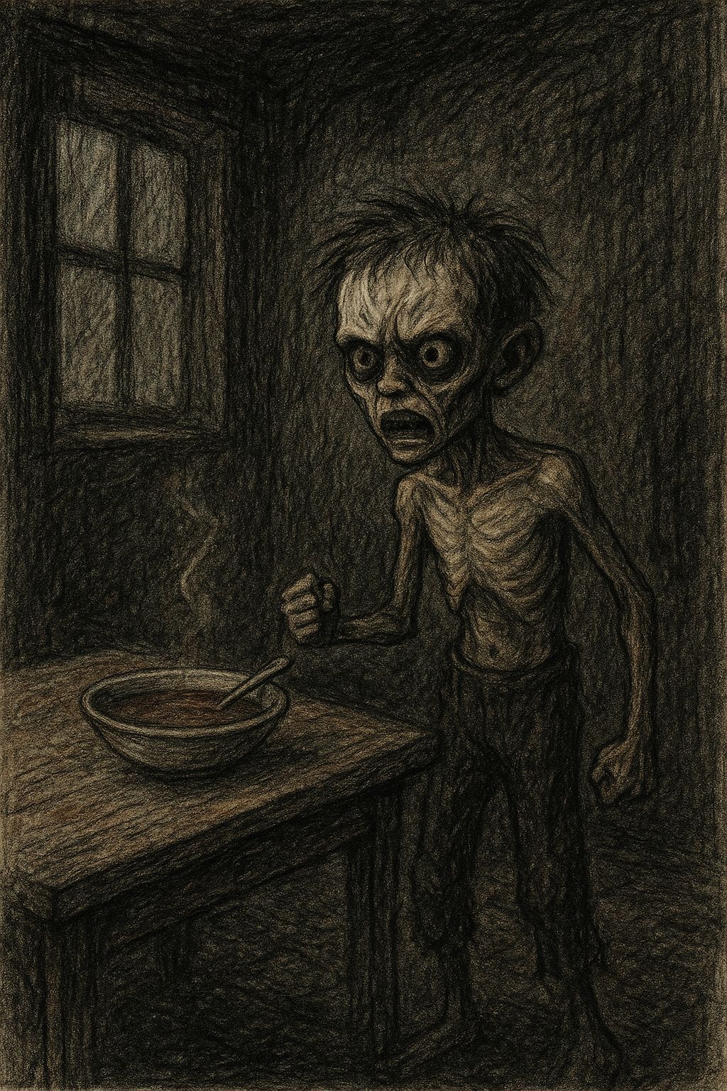 This is a dark atmospheric, horror-inspired 'Neue Deutsche Härte'-style song called 'Struwwelpeter' with a heavy, slow industrial beat, Aggressive, riff-driven electric guitars, deep bass, hard drums with prominent snare and tom accents, Vocals in german, deep, powerful, theatrical, with emotional intensity, Arrangement dynamic: tension-building in the verses, epic chorus, breakdowns with horror sounds for scary effect, scary melody played by a detuned musicbox, Atmosphere is dark, grotesque, horrific, slightly menacing and full of dispair, with a sense of dark tragedy, Include many instrumental solos, especially synthesizer solos