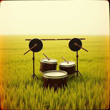 Traditional Korean percussion fusion, 132BPM, A minor pentatonic, Instruments:buk (Korean barrel drum) with powerful gutgeori rhythm, janggu (hourglass drum) syncopated patterns, jing (large gong) dramatic accents, kkwaenggwari (small gong) high-pitched metallic hits, ajaeng (bowed zither) glissando techniques, Korean traditional oboe piri, piano minimal chords, Western oboe responding to piri, Korean percussion dominates 70% of the mix, Performance:aggressive traditional farmer's music nongak style, energetic rhythmic complexity, call-and-response between Korean and Western instruments, Production:live recording feel, traditional Korean outdoor performance acoustics, powerful drum presence, bright metallic percussion clarity, Constraints:Korean drums must be loudest element, Western instruments follow Korean lead, no electronic effects on traditional instruments, Tags:nongak, samulnori, korean-percussion, gutgeori, fusion
