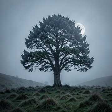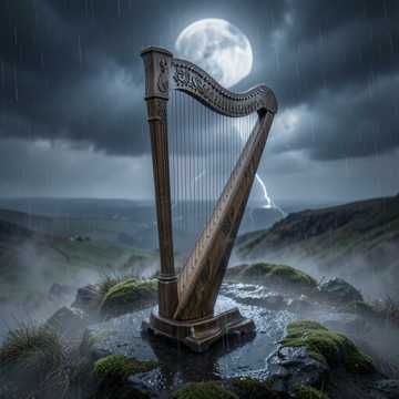ancient celtic, mystical slow air, ireland, female ethereal vocals, haunting harp arpeggios, soft tin whistle whispers, distant uilleann pipes, night forest atmosphere, lunar glow, very slow tempo, whispering trees, pagan serenity