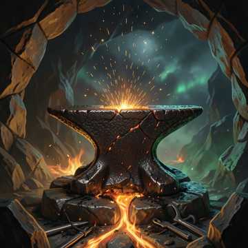 celtic folk metal ballad, mystical ireland, male strong vocals, heavy acoustic guitar, anvil strikes SFX, uilleann pipes, epic yet ancient feel, forge of the eternal youth