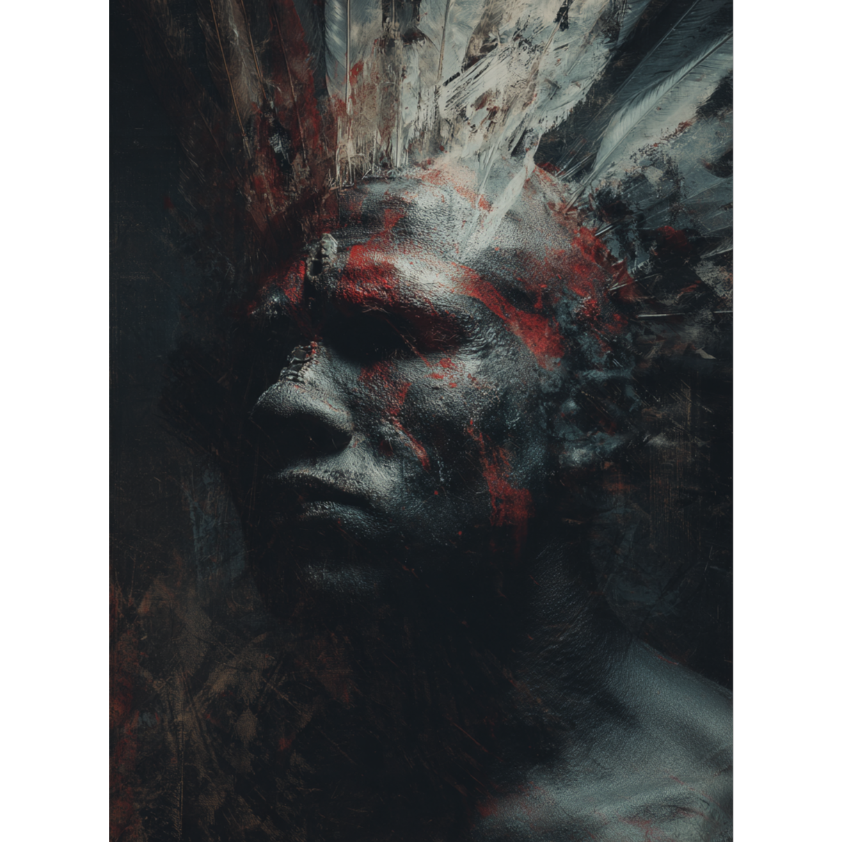 Thunderous polyrhythmic percussion drives the foundation, entwined with deep djembes and talking drums evoking ritual energy, Layers of distorted guitars grind over raw industrial samples and mechanical synth lines, Electronic textures pulse beneath tense, chant-like group vocals, building to massive drops where organic and metallic sounds collide for a haunting tribal metal climax