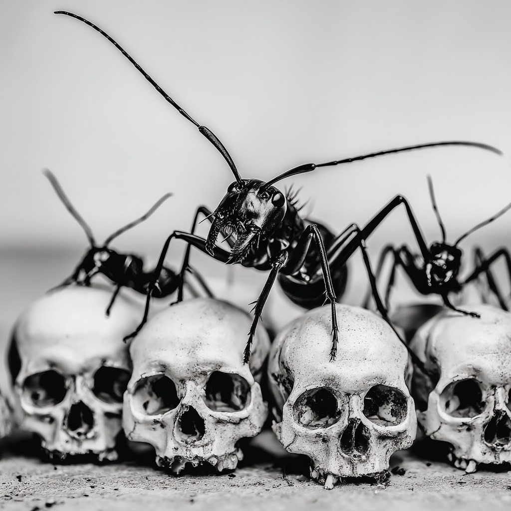 THEME: Ant worker human metaphor, gray ant dreams, worker suicide, clone nobody, never parent sky, spider reigns, never queen, fall rise