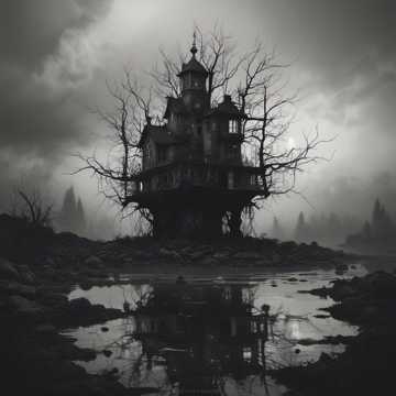 aggressive loud chanting, praising the cult leader, deep in the woods, Nordic cold climate