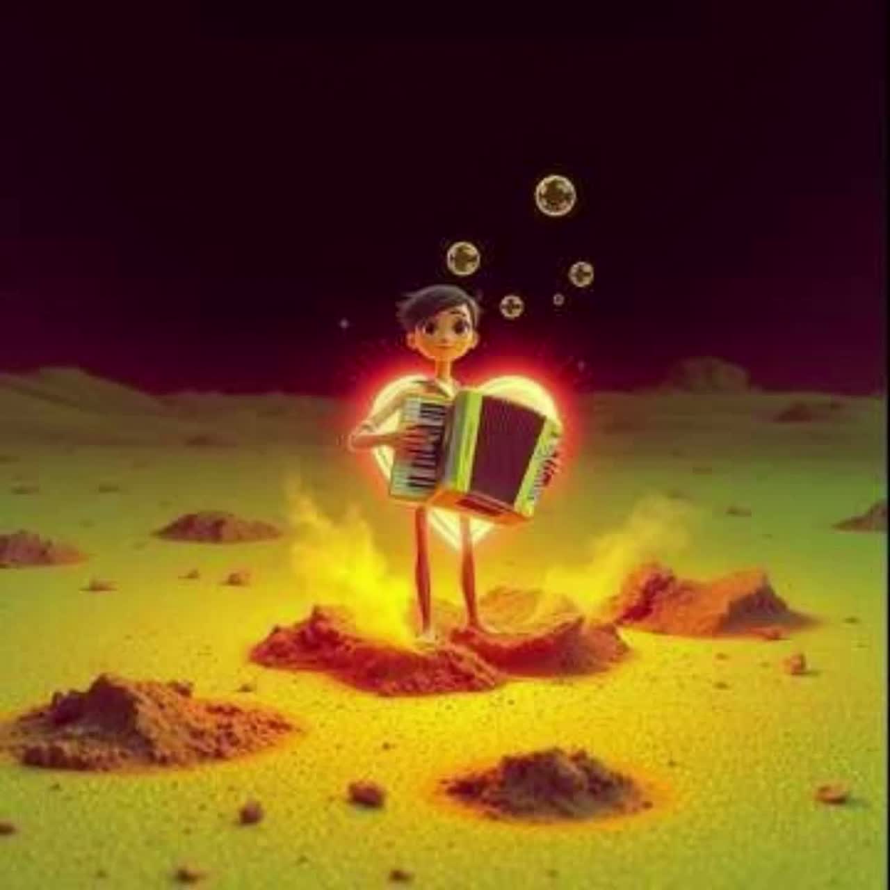 indie-pop and digital cumbia track with playful poetic elements, Mood: hopeful, humorous, and flowing like blood through invisible paths, Instrumentation: synths with airy pads, light guitar riffs, digital cumbia percussion (congas, güiro, electronic beats), and a warm bassline, Tempo: mid-tempo, around 95–100 BPM, with a danceable but relaxed groove, Style: dreamy indie textures fused with tropical cumbia rhythms, theatrical pop energy in the chorus, Vocals: expressive, alternating between poetic verses and humorous lines (mentioning pulguitas, sanguijuelas, compression stockings), Bridge: softer, introspective, highlighting the heartbeat pulse expanding without fatigue, Overall: playful yet emotional, blending satire and tenderness, ending with a humorous but caring reminder about compression stockings for the legs