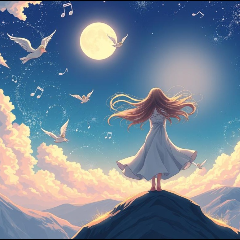 Acoustic Ballad, Neoclassics, ambient, space theme, female soprano, atmosphere, ethereal piano, clear female vocal, orchestral pop, emotional crescendos, ballad, space music, symphonic orchestra
