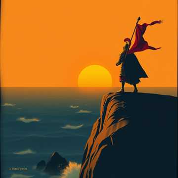 Huge war drums and low male chants, distorted lyre and lute riffs; verses stay tense and close, almost whispered over gritty percussion, then chorus explodes with gang vocals, hammered dulcimer, and roaring ambience like a battle on a cliff edge, Final chorus adds octave-doubled male vocals and echoing shouts, trailing into desert wind FX