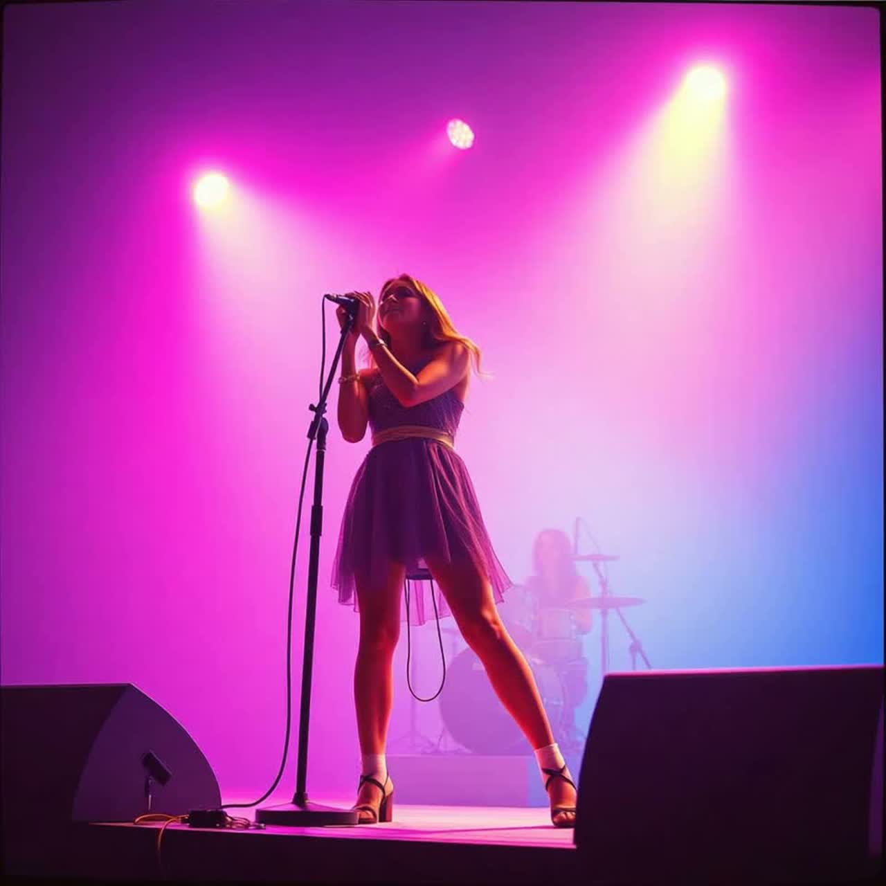Hyper-Aggressive Speed Metal, Dual Powerful Female Vocalists (High-Pitched Harmony and Raw Vocals), Intense Live Performance, Massive Audience Roar and Cheering, Epic Scale, Heavy Distortion Guitar Riff, Shredding Guitar Solo, Thunderous Double Bass Drumming, Electrifying Atmosphere, Unstoppable Rhythm Section, Fast Tempo