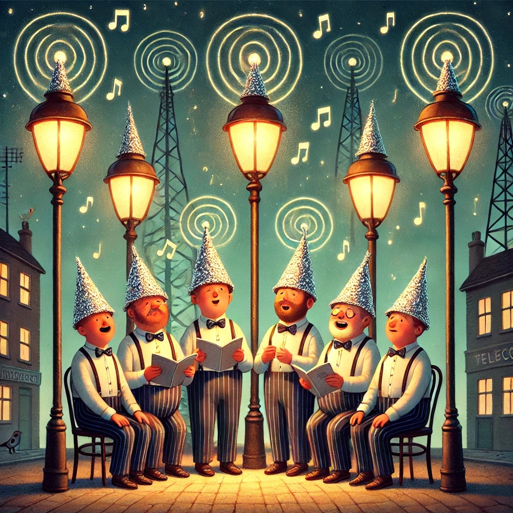 satirical folk, 6/8 time, humorous, and sardonic, narrative, theatrical vocals, light and playful, group singalong, storytelling style, sharp social critique