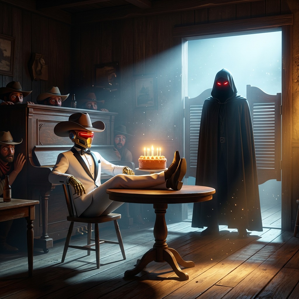riddim country step 140 bpm half time riddim cinematic harmonica intro harmonica wail lead harmonica melody focus on intro dubstep wobble bass dirty southern twang guitar festive banjo picking joyful banjo strumming celebratory banjo riff dark fiddle heavy sub bass stomping kick drum syncopated riddim triplet pattern thick low end gritty bass wobble minor key ominous dark tone texas drawl vocals comedic storytelling deadpan spoken word saloon crowd ambiance chaotic festival energy dark humor mood cinematic bass drop aggressive growl bass deep rumble sub punchy snare off beat riddim Reggae, Ska, Rock, Pop Rock
