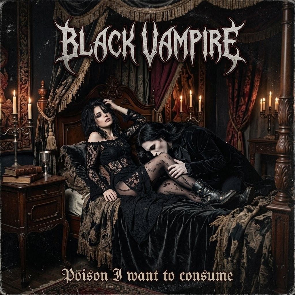 The female vocals are aggressive, raspy, and slightly distorted with a radio-filter effect, The atmosphere is dark and horror-themed, with subtle mechanical synthesizer loops in the background, Catchy