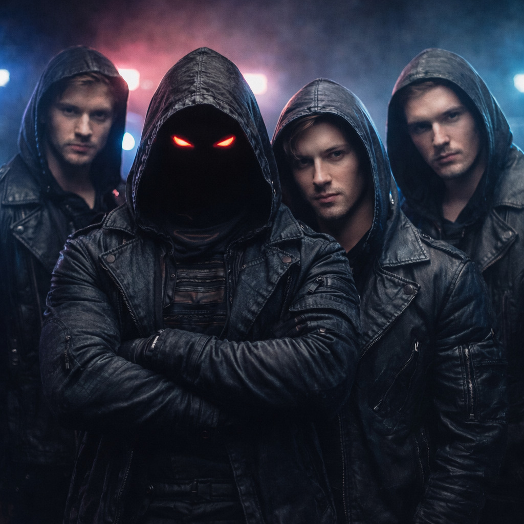 industrial metal, EDM, epic, heavy-hitting drums, heavy guitars, driving guitars, gritty male vocals, big sound, loud mix, full band