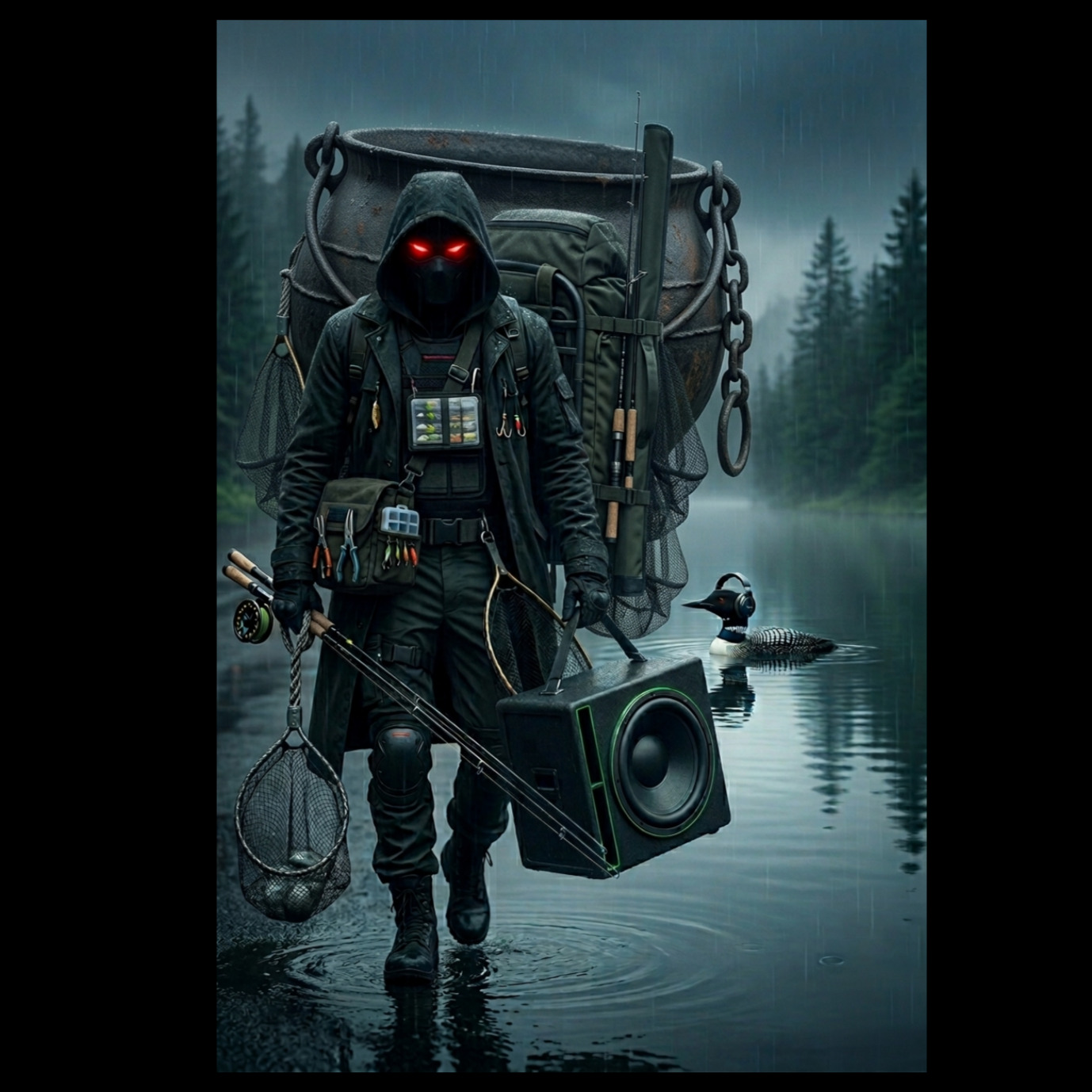 Progressive art metal inspired-Tool and Karnivool, Long-form 5-6 min piece in multiple movements, deep spiritual and psychedelic atmosphere, Starts with reversed ambient guitars, heartbeat bass pulses, tribal percussion and distant vocal fragments, Shifts through 7/8, 5/4, 9/8, and 6/8 meters, Spoken word, meditative verses, layered falsetto vocals, emotional build-ups, Dense polyrhythms, wah bass grooves, reversed delays, feedback, AM static, and talk box guitar textures, Vocals used also as texture: grunts, whispers, chants, Rain and slide guitar interlude, Smooth ambient crossfades link sections, Final climax unifies all elements with ritualistic force, Cinematic, immersive, and dynamic, Mastering: emphasize spatial depth, stereo imaging, and analog warmth with focused midrange, deep lows, and softened highs