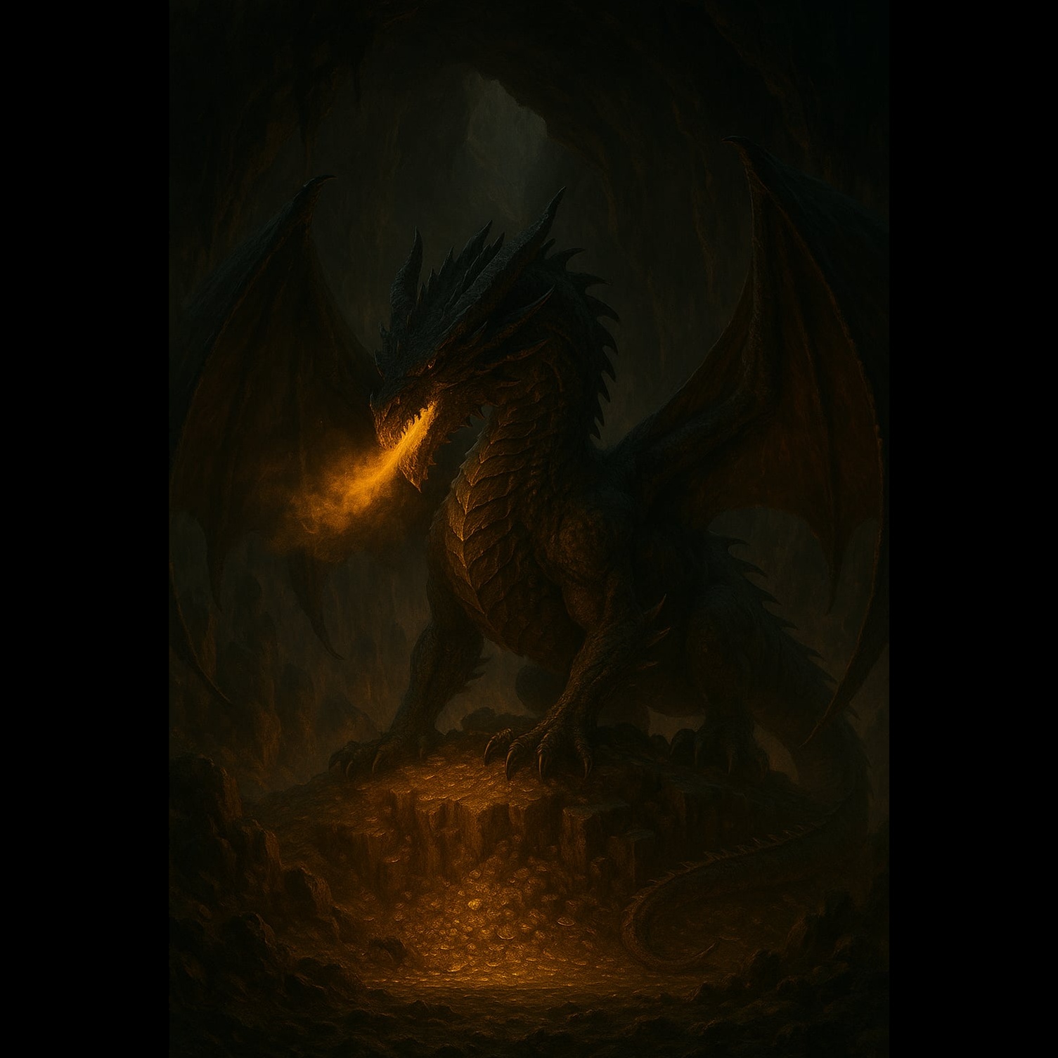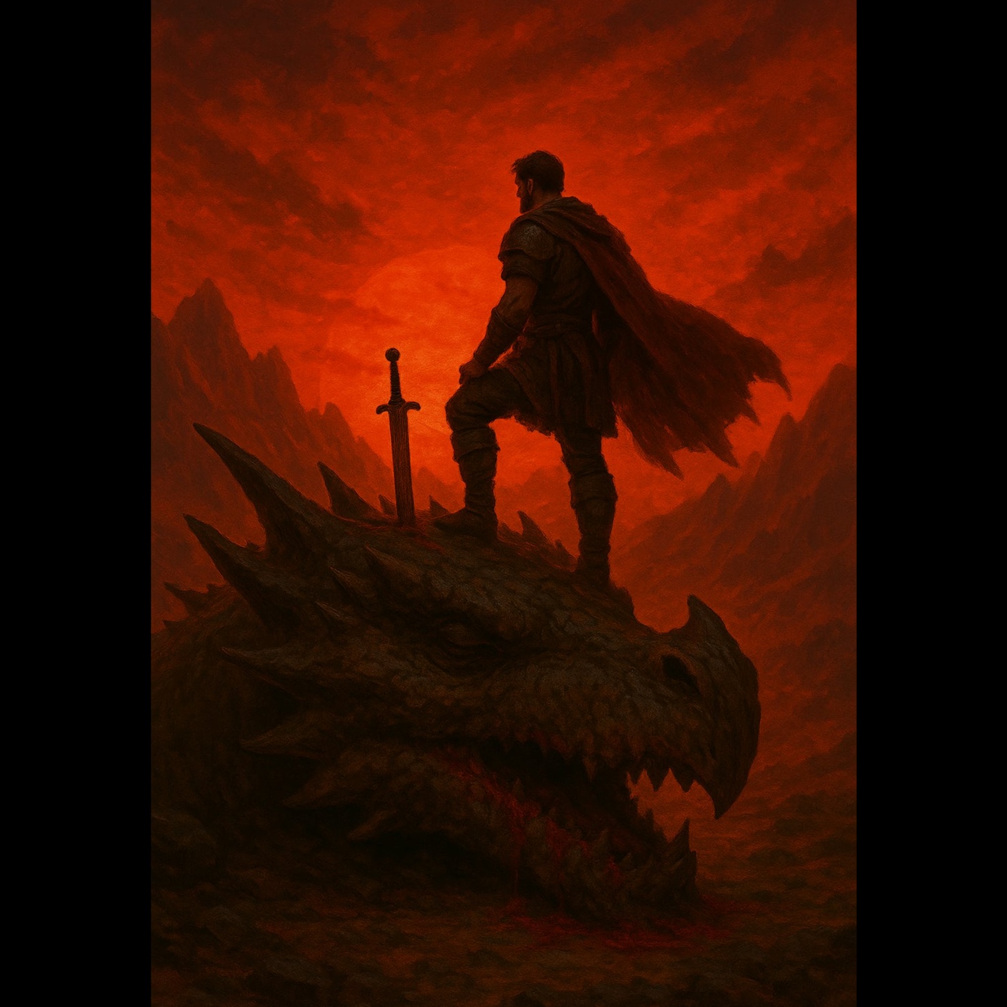 Epic, soaring fantasy metal with a blend of thunderous double-kick drums, galloping rhythm guitars, and symphonic orchestration, Emotional male vocals with a powerful and heroic tone lead the song, supported by dramatic choirs and magical instrumental layers, Incorporates fiery themes with ambient draconic elements — like roaring flame-like synths, echoing horns, and mystical interludes with ancient-sounding chants, Structure builds through intense verses, swelling pre-choruses, and explosive, unforgettable choruses that evoke flight, loss, vengeance, and rebirth, Melodic yet heavy — a tale of a mighty ancient race rising once more from extinction, Cinematic, fierce, magical, and heroic