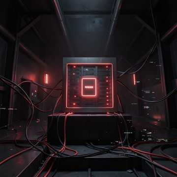 Aggressive industrial midtempo bass intro, Slow mechanical startup with glitching digital textures and low sub drones, Metallic impacts and distant machine hums create tension, No full drums at first—just pulsing sub hits and filtered noise, Gradually introduces a punchy, dry kick with heavy sidechain compression, Distorted, robotic vocal fragments processed with bitcrushing and pitch-shifting (“booting… system… online…”), Sharp industrial snare enters halfway with minimal rhythm, High-pitched dissonant synth pulses in a staccato pattern, Frequent silence gaps, tape-stop effects, and glitch cuts, Dark, cinematic, ominous, 100 BPM, 4/4, D minor