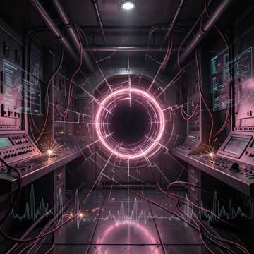 Aggressive industrial midtempo bass and dark club music with cinematic, high-impact energy, Distorted metallic basslines hit with powerful, dramatic emphasis and heavy sidechain compression against a punchy, dry kick, The groove is strong and commanding, with more emotional weight than previous tracks, Gritty vocal samples are intense and declarative with distortion and reverb (“system breach… containment lost… entering reality…”), Percussion features a sharp industrial snare, driving hi-hat patterns, and impactful metallic hits, A high-pitched dissonant lead synth evolves into a more melodic, cinematic motif, Layered pads and atmospheres add depth and scale, Strategic silence gaps and tape-stop effects enhance impact, Dark, epic, and climactic, 100 BPM, 4/4, D minor, Vocal Ideas (declarative + final)