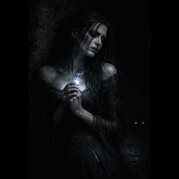 Semi cinematic vampire story, The female voice is cracking sometimes, We hear a faint ghostly background choir, haunted organic hurdy-gurdy, dark evil electric guitar, dark organic soft rock fusion, haunted, charismatic female singer, high voice register, [adapted remaster, keeping it organic]