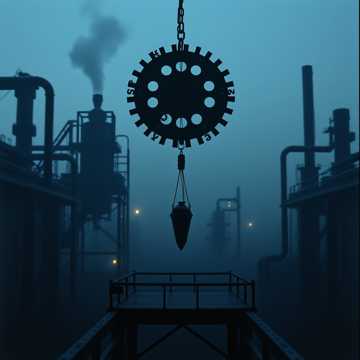 Slow trap style with heavy atmospheric flows and raw subdued delivery fused with dark trip-hop big beat atmosphere and cinematic tension plus gothic industrial mechanical sounds, very deep low-pitched gravelly alien male trap voice extremely buried in the mix and very distant, vocals heavily subdued almost whispered menacing and atmospheric under very thick layers nearly inaudible, dominant slow crushing 808s and hypnotic big beat drums, metallic factory clanging and gear grinding noises, eerie gothic synth pads and cold reverb echoes, mechanical steam and piston sounds, subtle cinematic electronic textures and swirling pads, unsettling creepy intro with low rumbling sub bass hum and distant ethereal metal echoes, dramatic intense outro with layered electronic and industrial chaos fading into void silence, vocals must be low volume background whispers only, no aggressive no shouting no screaming no growling no loud vocals at all, instrumental dominant with faint vocal texture