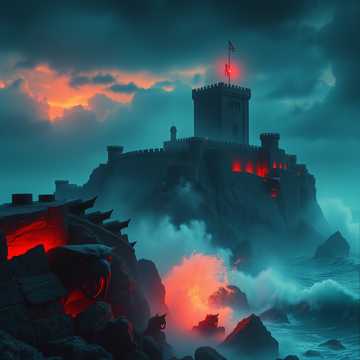 Dark cinematic romantasy rock ballad, Stormy, dangerous, forbidden love, Fire woman and storm man defying gods and the sea, Slow build to explosive chorus, Deep drums, low strings, electric guitar, distant choir, ocean storm ambience, Brooding male lead with intense, restrained vocals, Lyrics about burning the tide as an act of love and rebellion