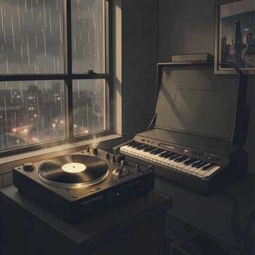 Lo-fi hip-hop, jazz-infused, 75 BPM, A minor, Sampled jazz chord loop, vinyl-saturated, subtle pitch-warp, Dusty drum machine pattern with swing quantization, Soft melodic piano counter-melody in upper register, Minimalist upright bass providing depth, Subtle tape hiss and record crackle for authentic texture, Warm electric piano (Rhodes) creating mellow tones central to lo-fi aesthetic, Studio-grade mix with vintage warmth, clear separation, no distortion, Maintains consistent introspective mood throughout, staying in the pocket, no dynamic build, Evokes quiet, late-night introspection, reflective yet grounded