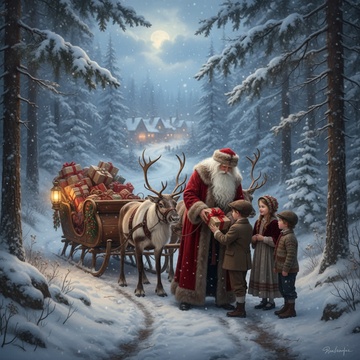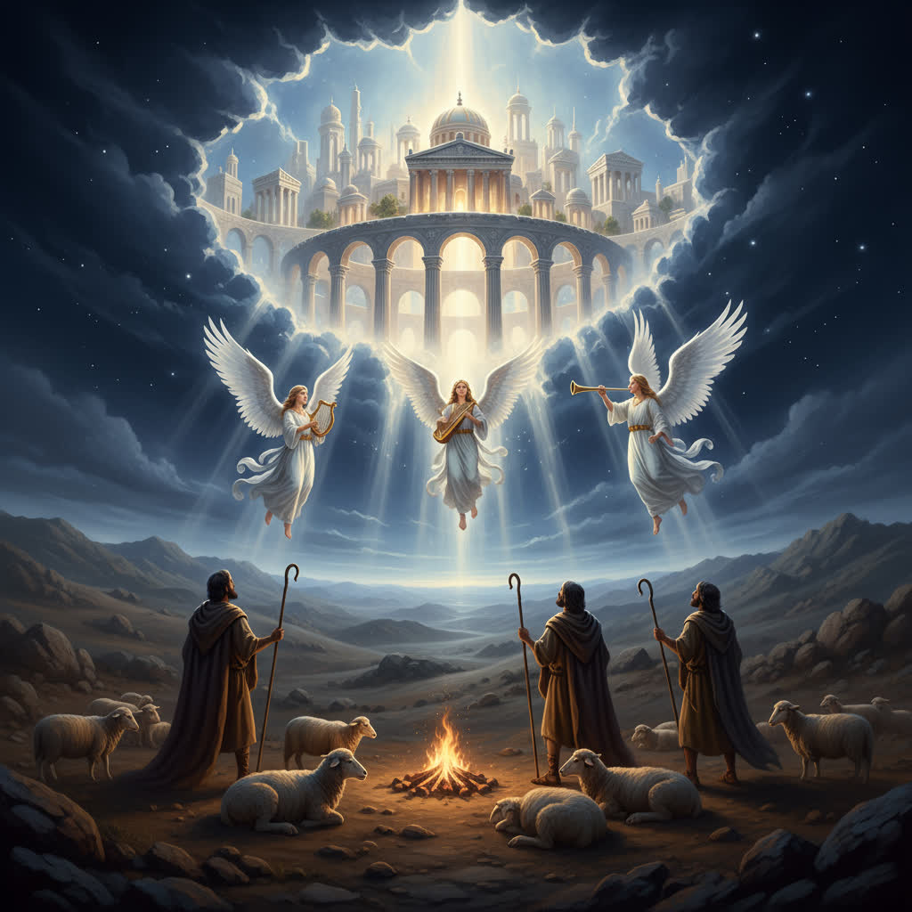 A bombastic and heavenly Christmas oratorio composed by Felix Mendelssohn, blending symphonic grandeur, sacred choral majesty, and operatic passion, A radiant fusion of harp, brass, and full orchestra unfolds beneath soaring tenor and soprano soloists joined by a vast SATB choir in polyphonic counterpoint and thunderous unison climaxes, Angelic harp arpeggios, triumphant trumpet fanfares, and resonant cathedral reverb evoke divine light, awe, and exaltation, capturing the glory of a celestial winter celebration — majestic, theatrical, and transcendent