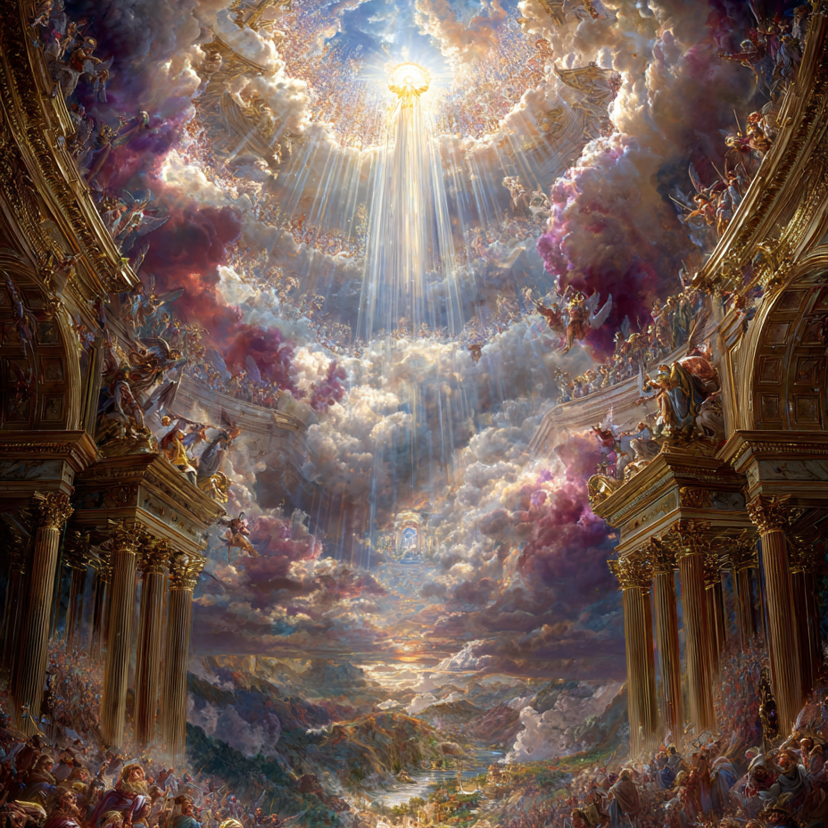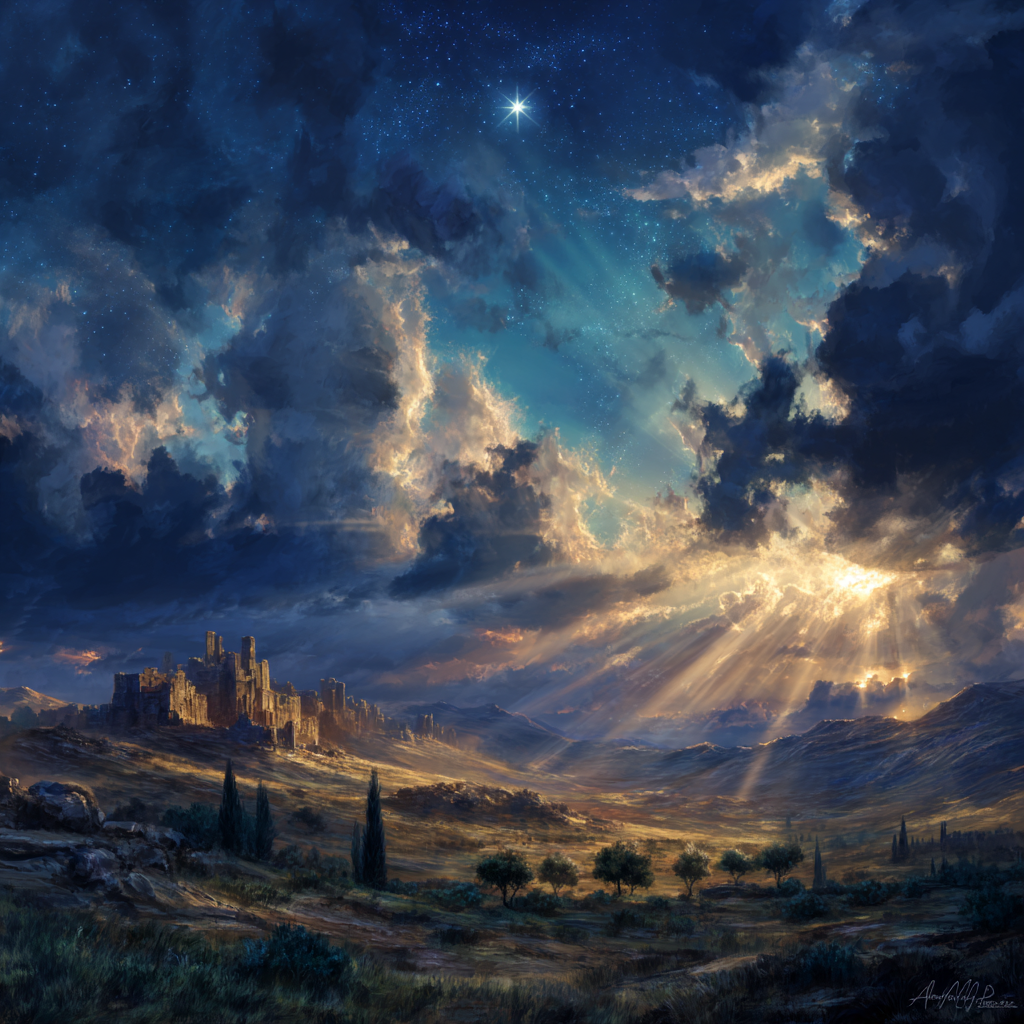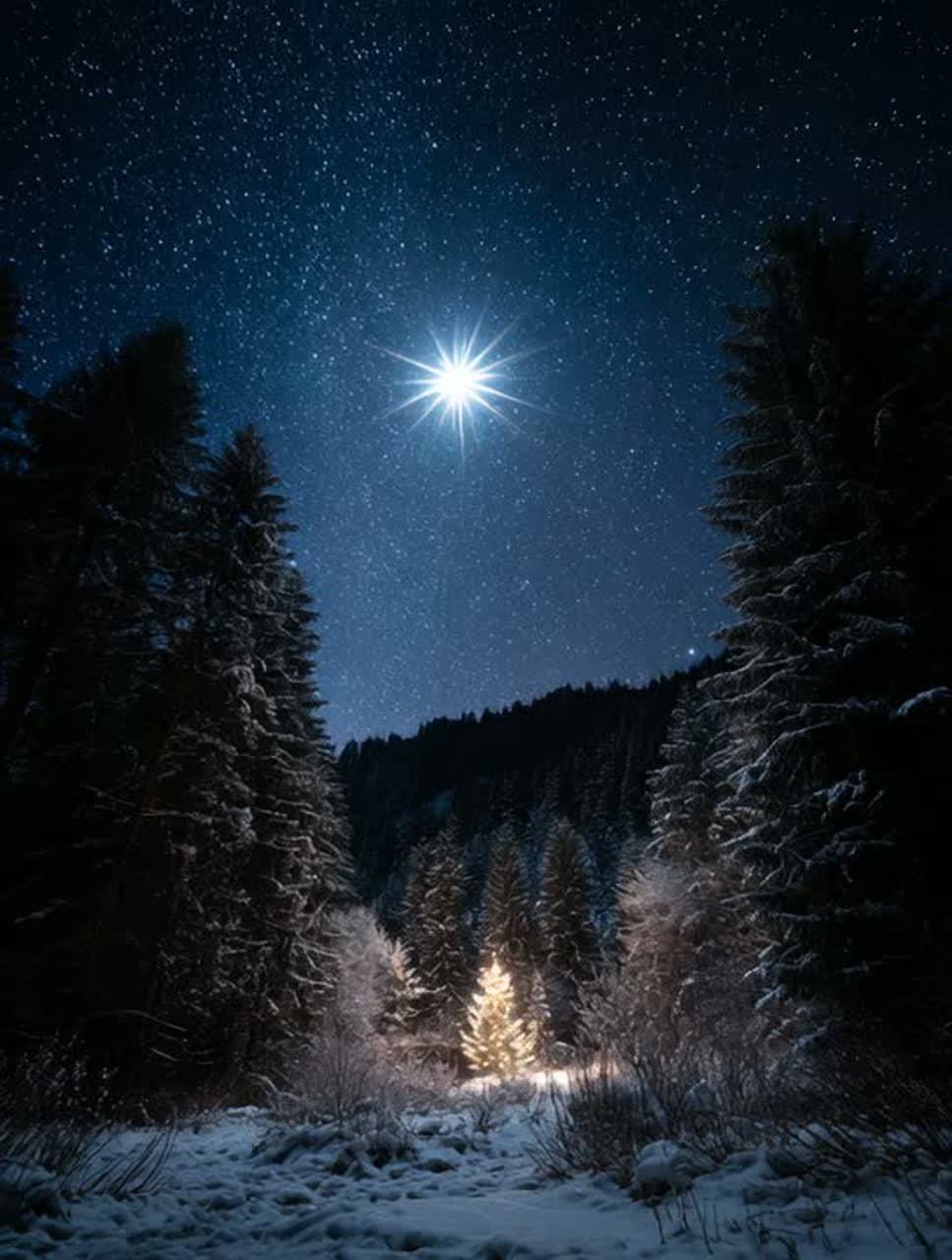 A bombastic and heavenly Christmas oratorio blending symphonic grandeur, sacred choral majesty, and operatic passion, A radiant fusion of harp, brass, and full orchestra unfolds beneath soaring tenor and soprano soloists joined by a vast SATB choir in polyphonic counterpoint and thunderous unison climaxes, Angelic harp arpeggios, triumphant trumpet fanfares, and resonant cathedral reverb evoke divine light, awe, and exaltation, capturing the glory of a celestial winter celebration — majestic, theatrical, and transcendent