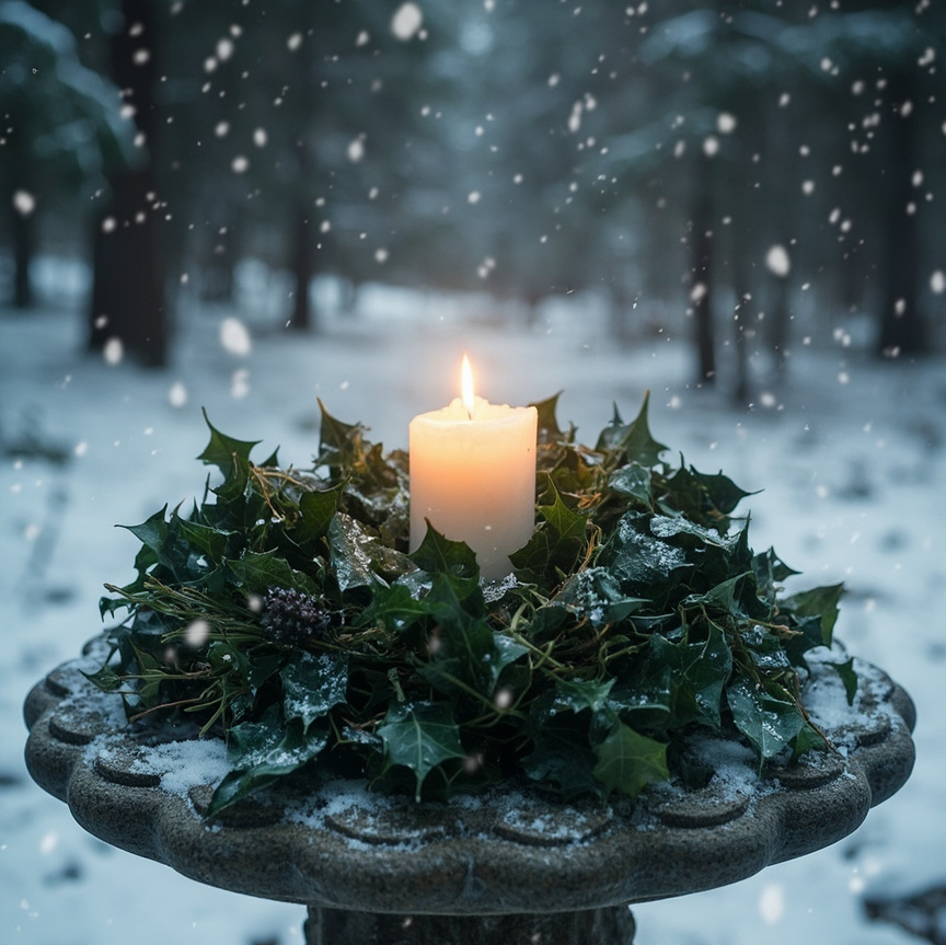 The Holly and the Ivy performed as a medieval chamber narrative in Dorian and Aeolian modes, Three distinct solo voices: a male tenorn a male baritone, and a female soprano singing in polyphonic harmony, no voice swapping or unison blending, Instrumentation: lute, vielle, recorder, psaltery, portative organ, and hurdy-gurdy, with open-fifth drones and minimal counterpoint, Delivery is chant-like, courtly, sacred, and rubato, evoking the atmosphere of a 12th–13th century oral tradition performance, ‑Instruments, ‑Pop, ‑Vocables, ‑Intro